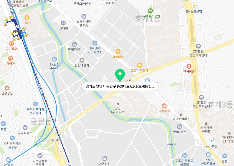 경기도 안양시 호계동 부근 위치하고 있습니다(상세위치 붙임 약도 참고/지하 1층)