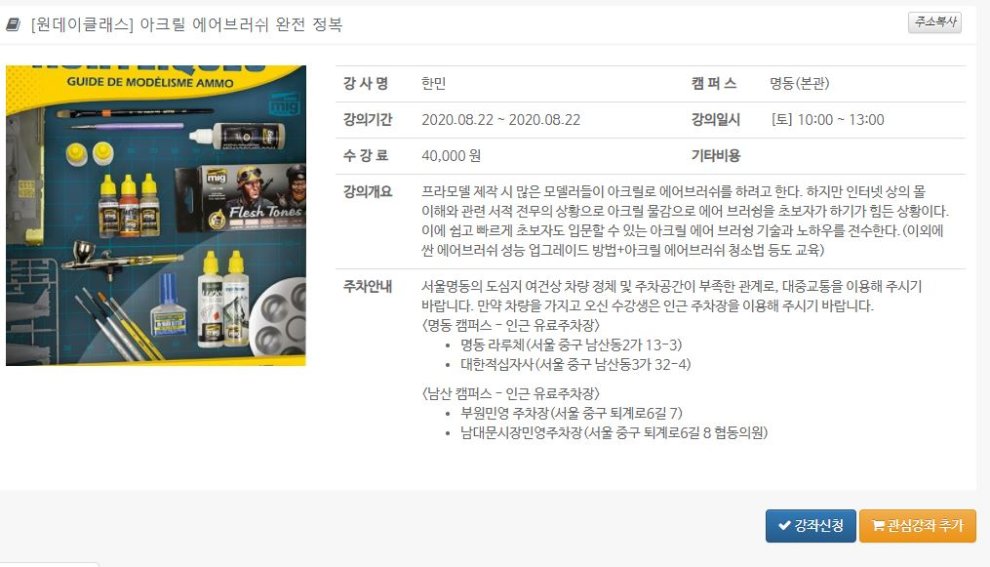 아 9월부터 하는 6주 과정의 프라모델 정규 수업도 있는데요. 튜닝타임즈 김두영님하고 같이 하고 있으니 아크릴을 체계적으로 배우시려면 신청해 주세요.