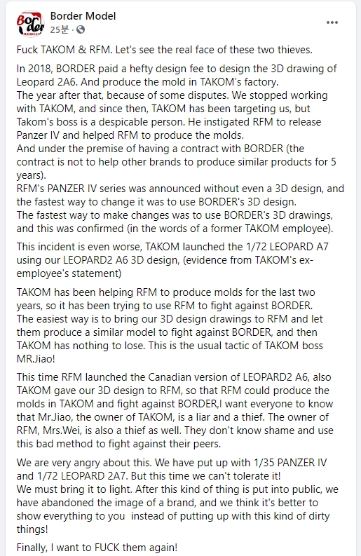 Border 모델이 공개적으로 Takom과 RFM을 비난