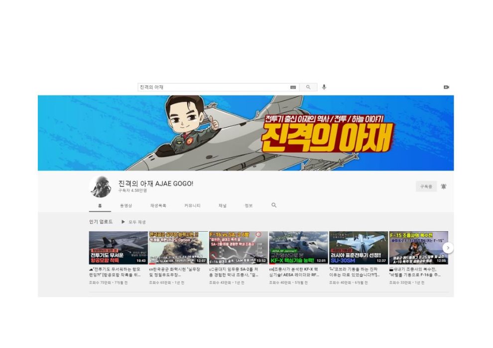 대한민국 전투기 조종사 출신이 운영하는 너튜브 채널이네요.