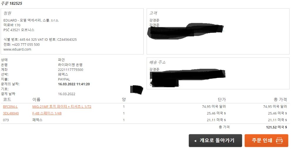 그래서 Eduard 본사 쇼핑몰에 직접 주문해보았습니다.