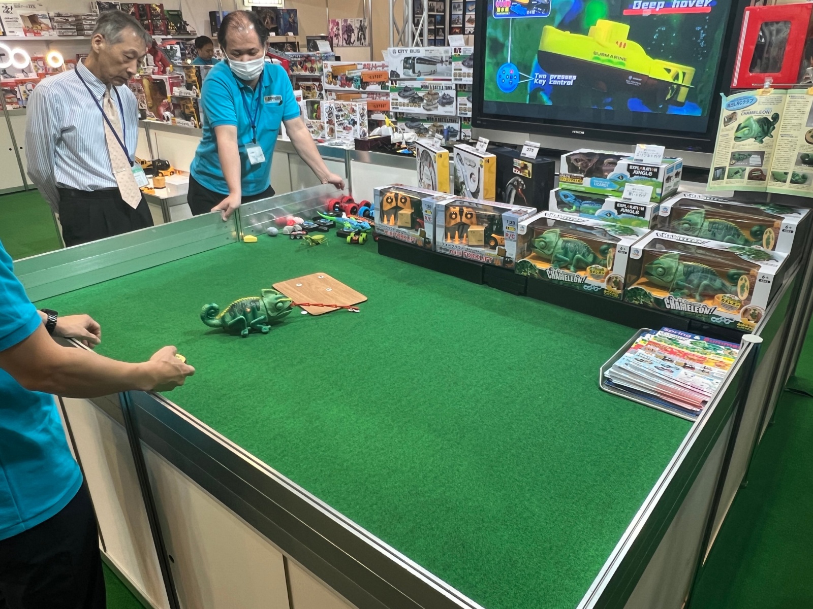 혀를 뻗어서 물건을 줍는 RC카멜레온.