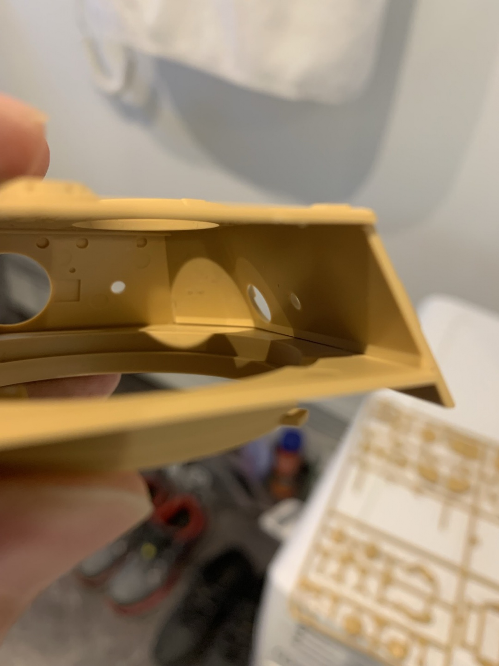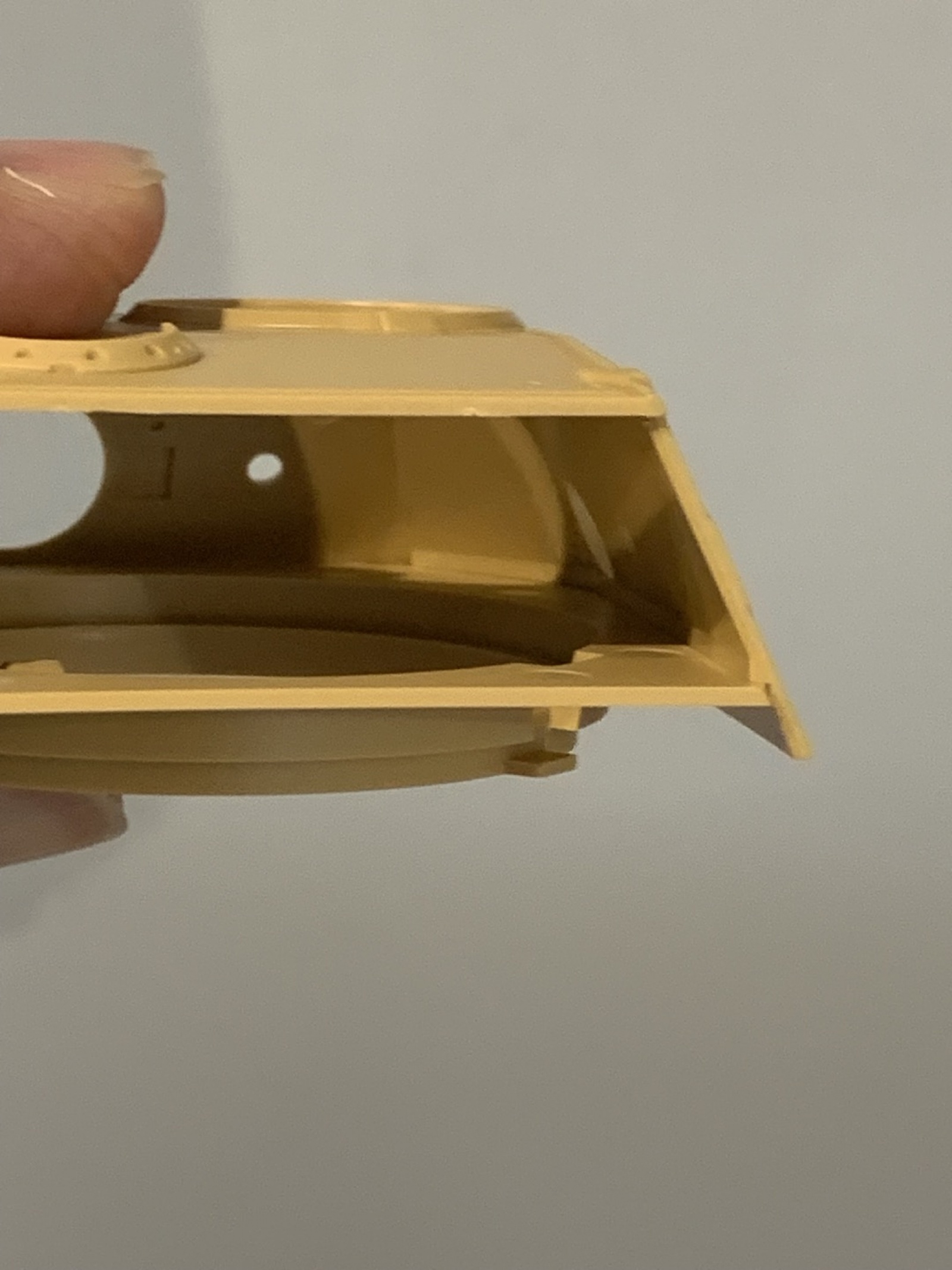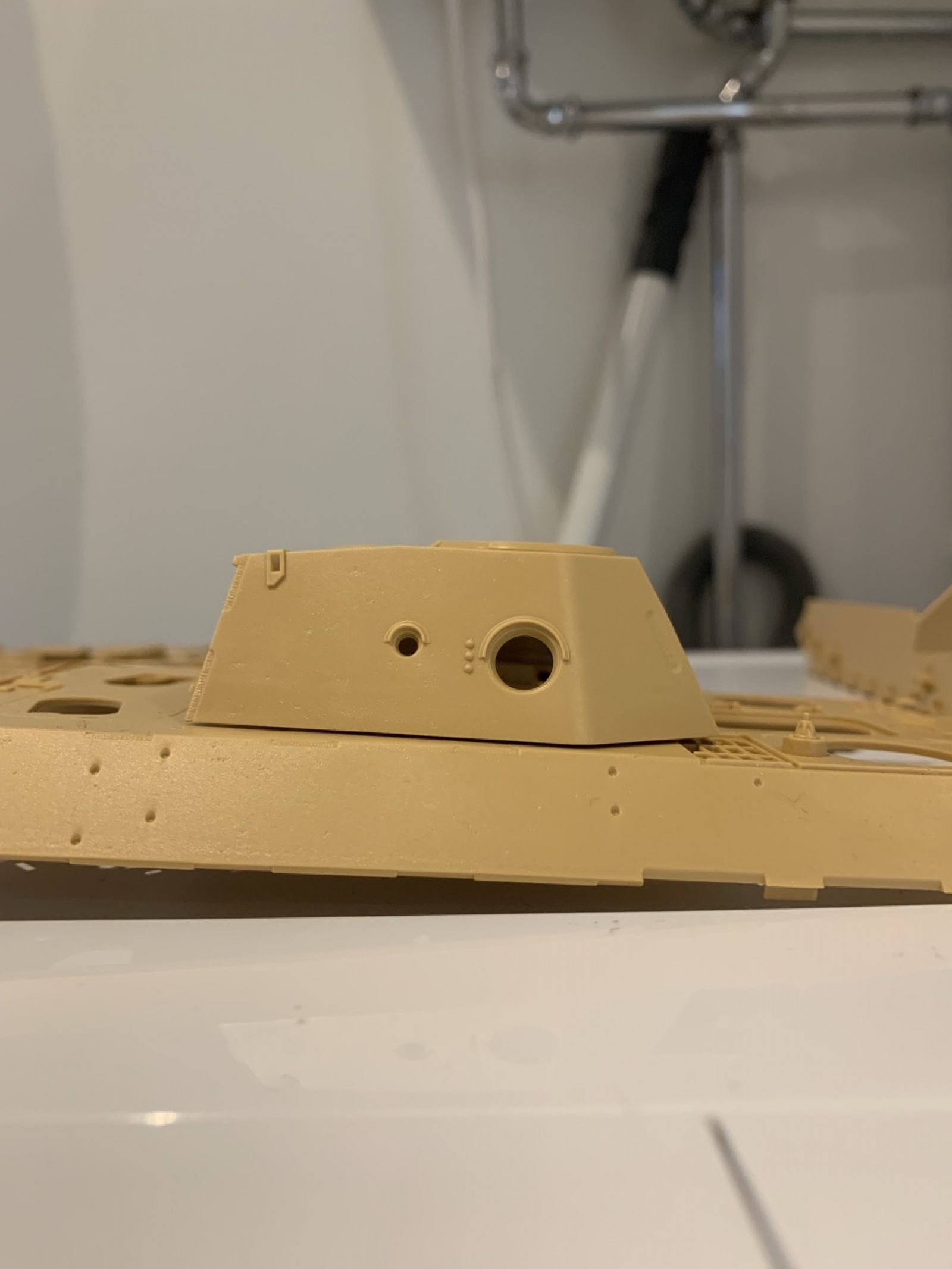 위 사진은 뒷판 먼저 붙인 뒤 아래 부품 붙였을 때 포탑 뒤가 들려있는 사진