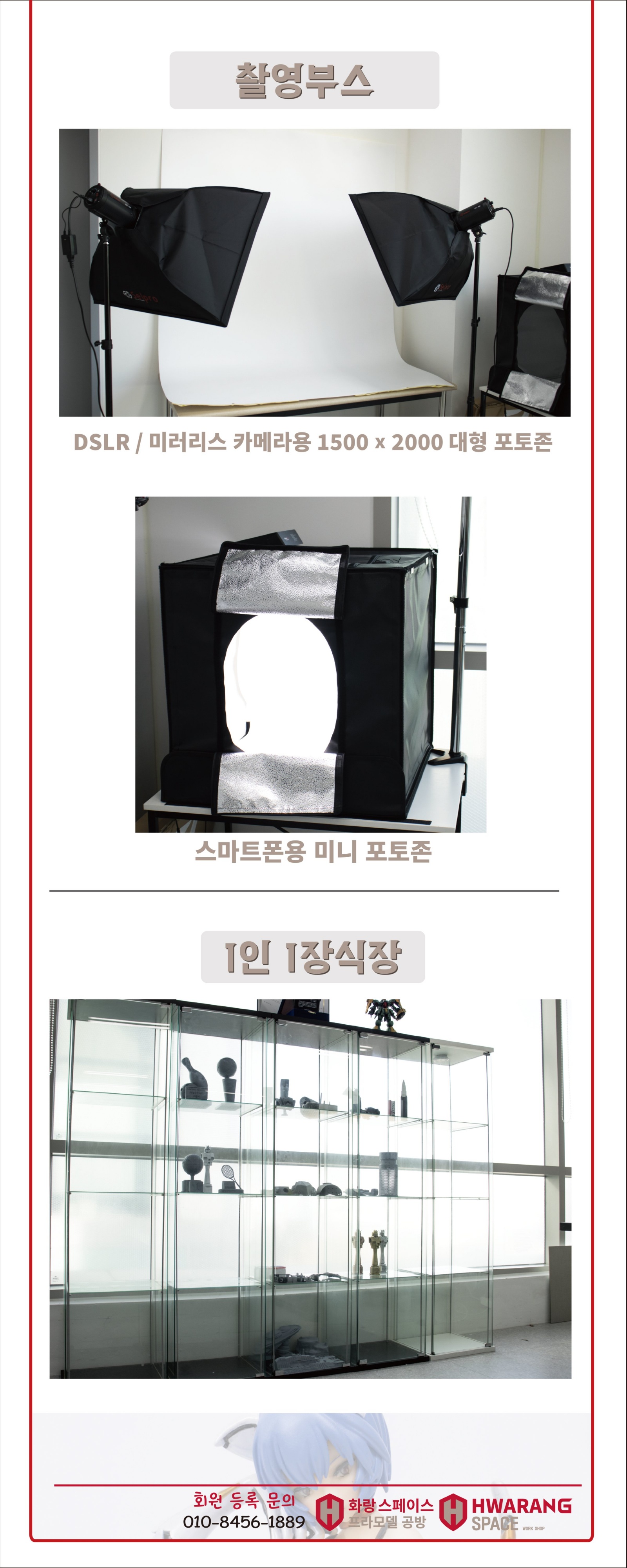 넓은 촬영스테이지에서 나의 도색 완성작을 촬영 할 수 있습니다