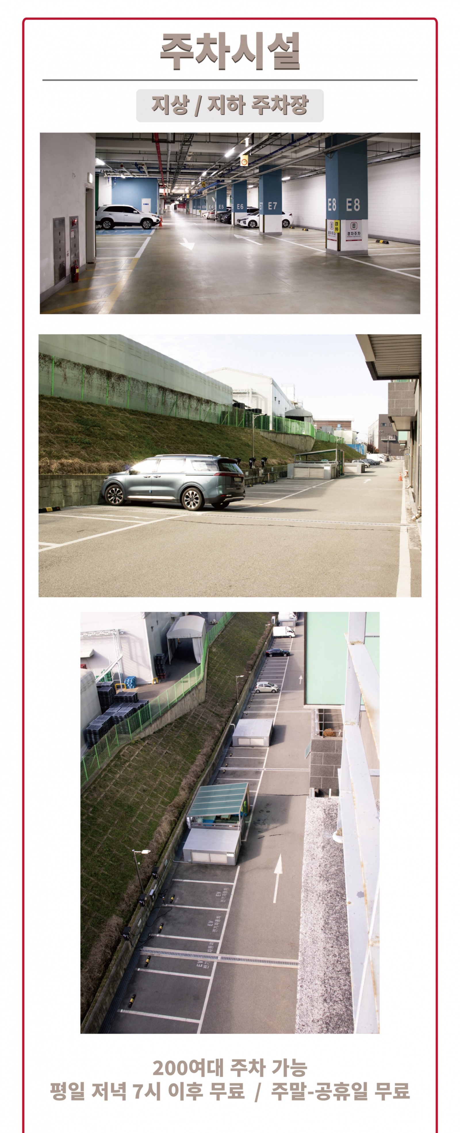 주차장은 평일 저녁 7시 이후 무료 / 주말-공휴일 무료 입니다