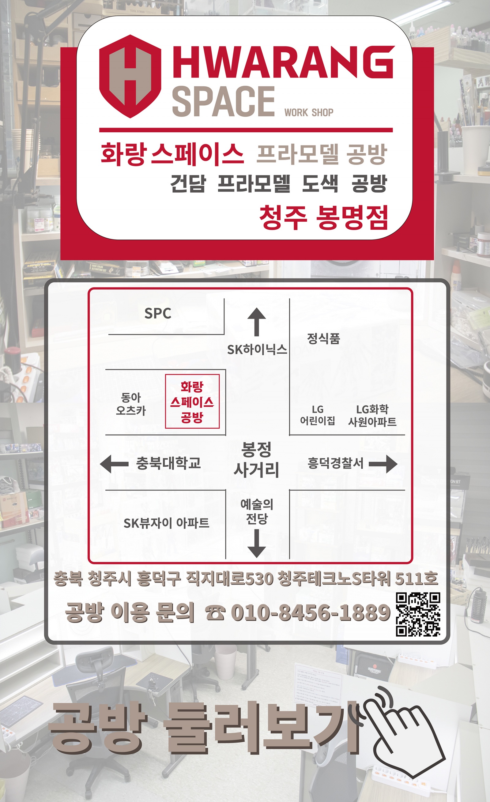 <화랑 스페이스 청주 봉명 2호점> 은 12좌석 규모의 프라모델 도색 공방으로