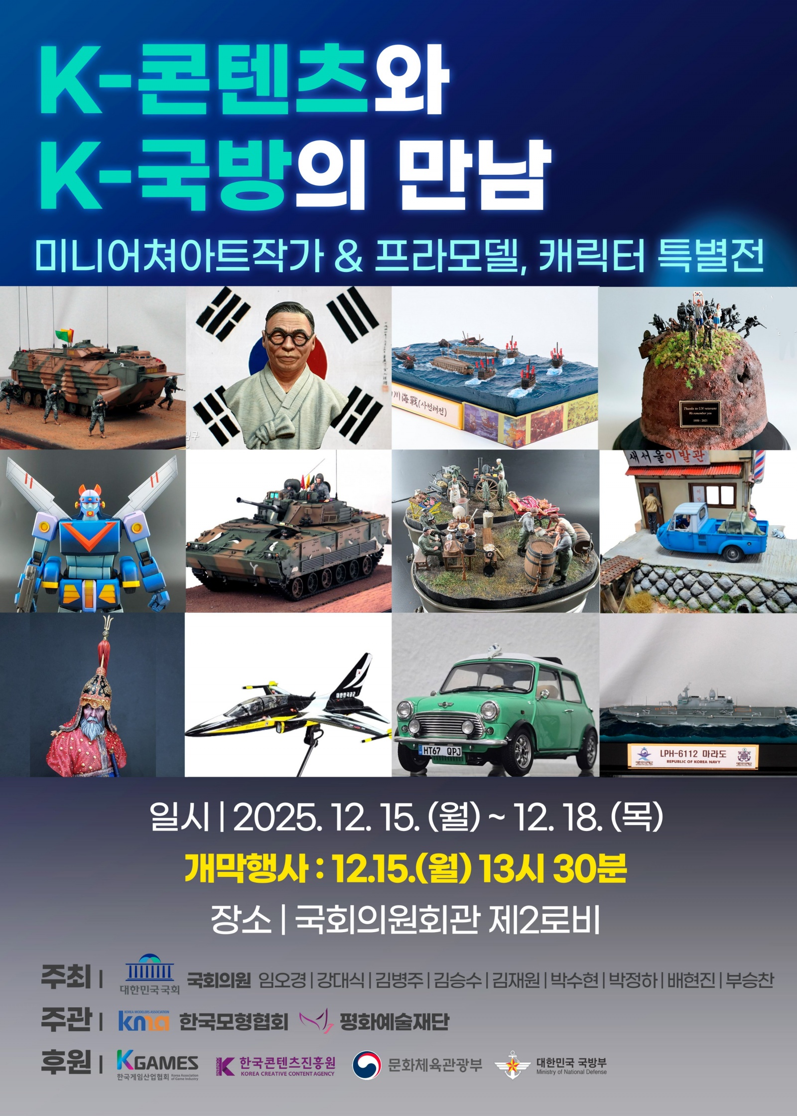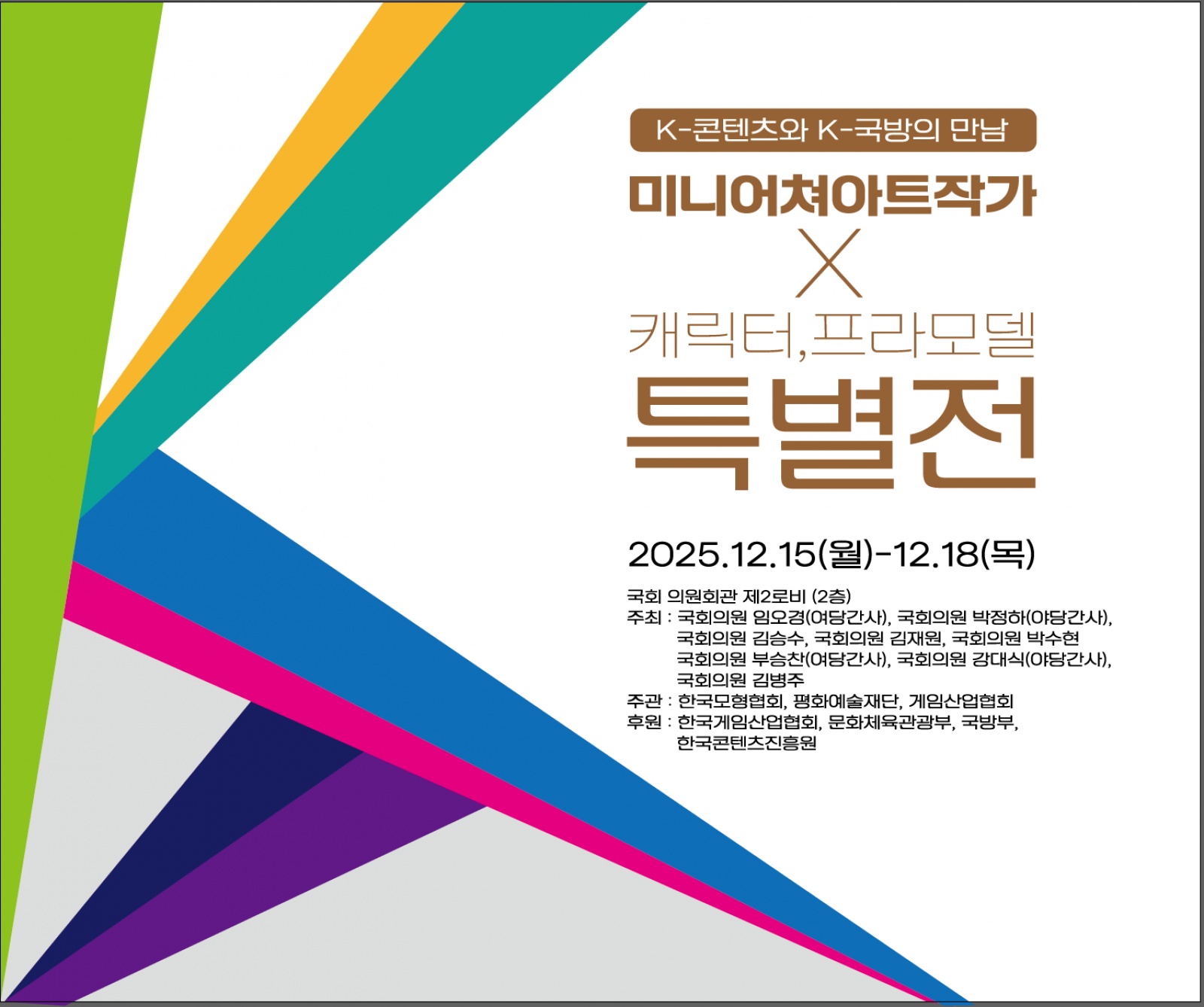 이번 전시회는 국회 문화체육관광위원회 여당 간사인 임오경 의원과 야당 간사인 박정하 의원이 주최하고, 한국모형협회와 평화예술재단이 공동 주관하며, 한국게임산업협회가 후원하는 행사입니다.