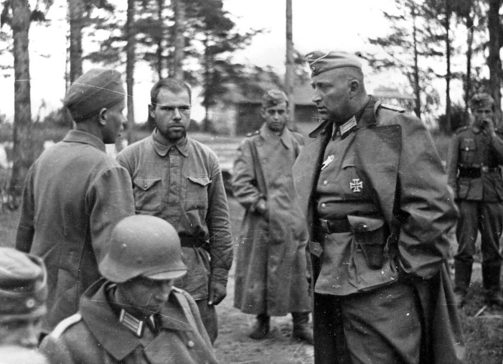 1941년 레닌그라드 전선....포로를 심문하는 제16군 소속 장교.