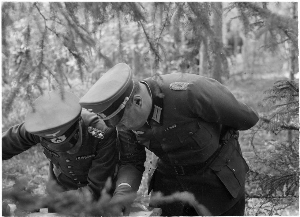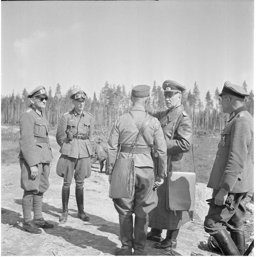 1941년 8월 카렐리아 전선...독일 제163보병사단의 장교들과 사단장 에르빈 엥겔브레흐트 중장과 등을 보이는 핀란드군 장교