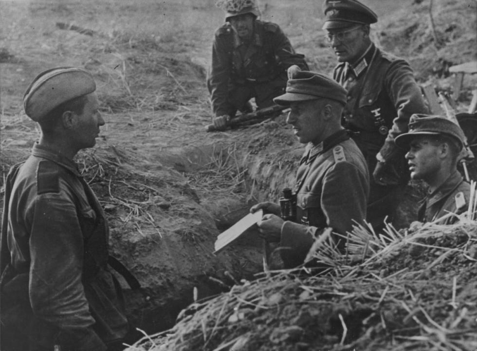 1943/1944년 동부전선...소련군 포로를 심문하는 독일군 대위.