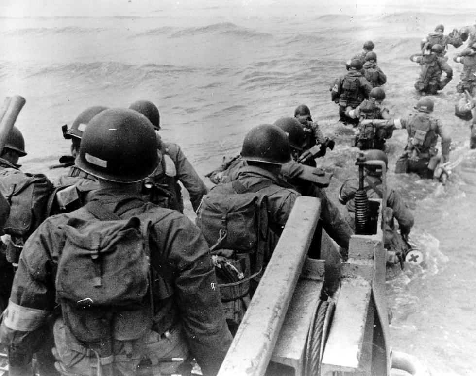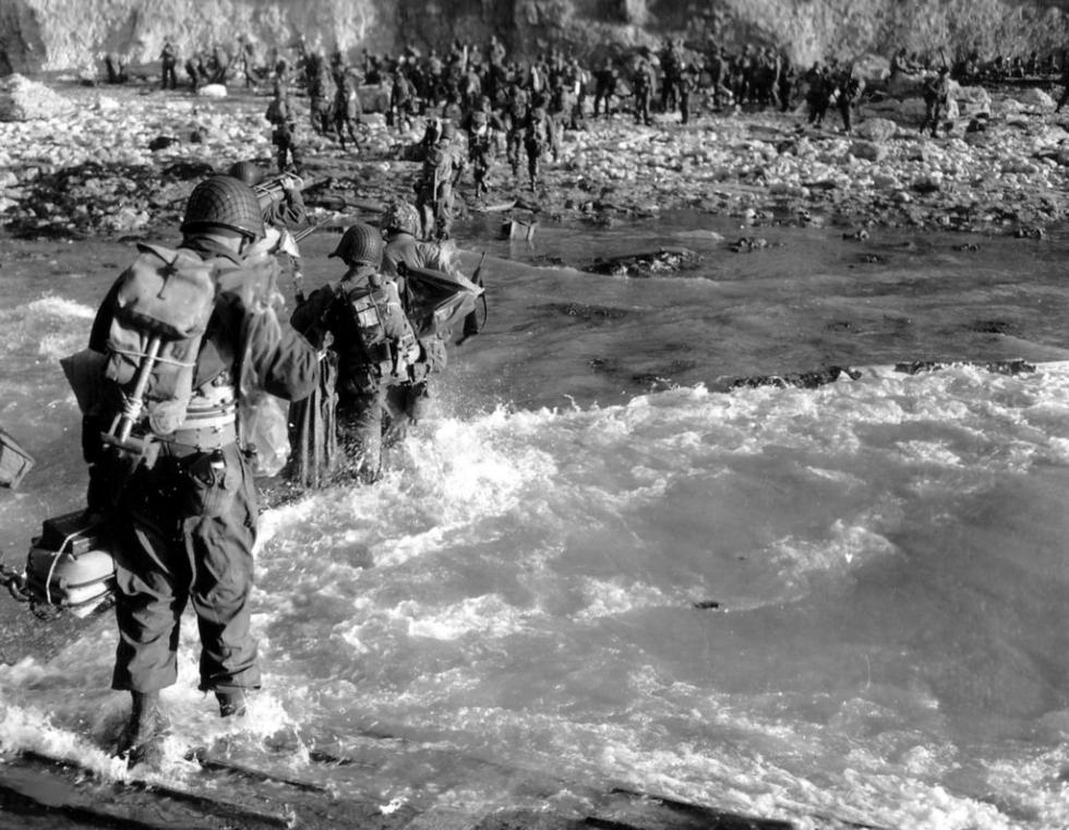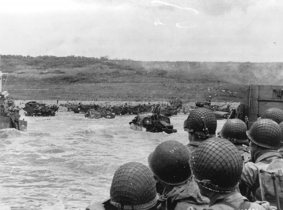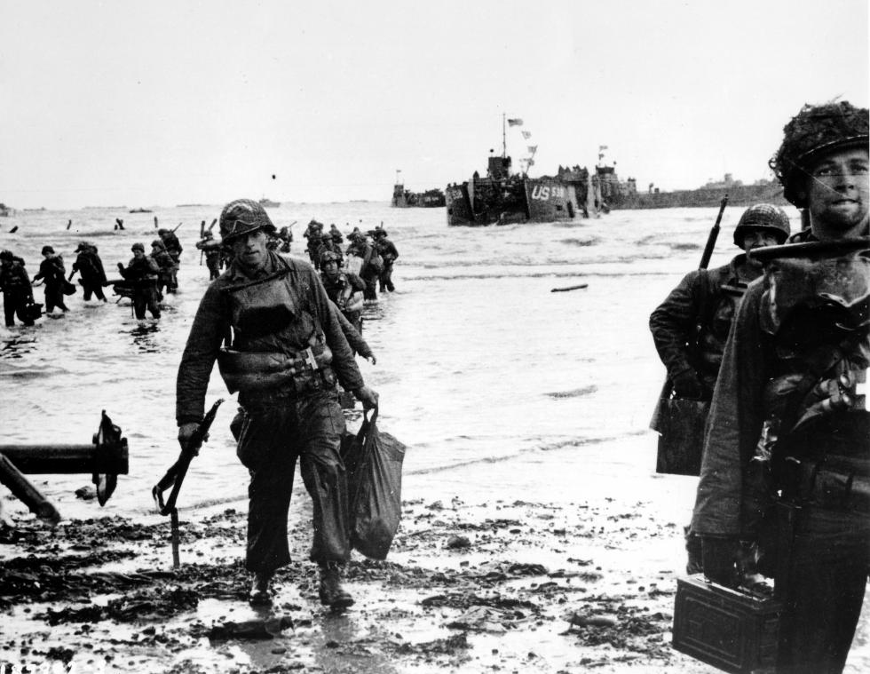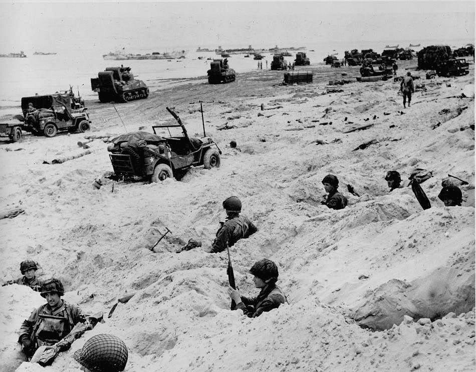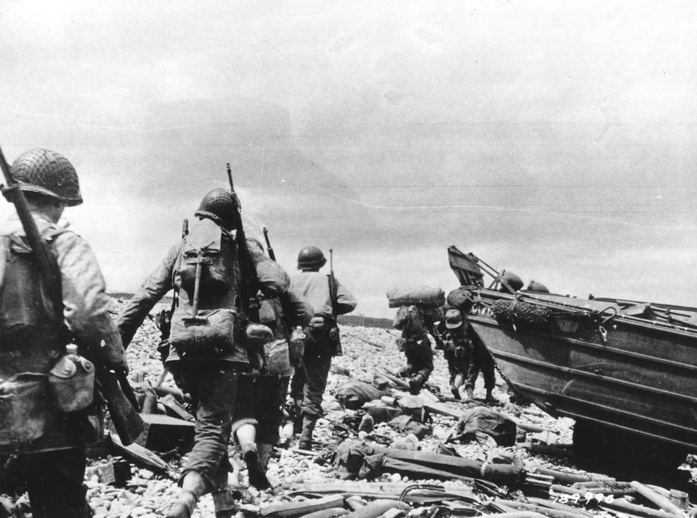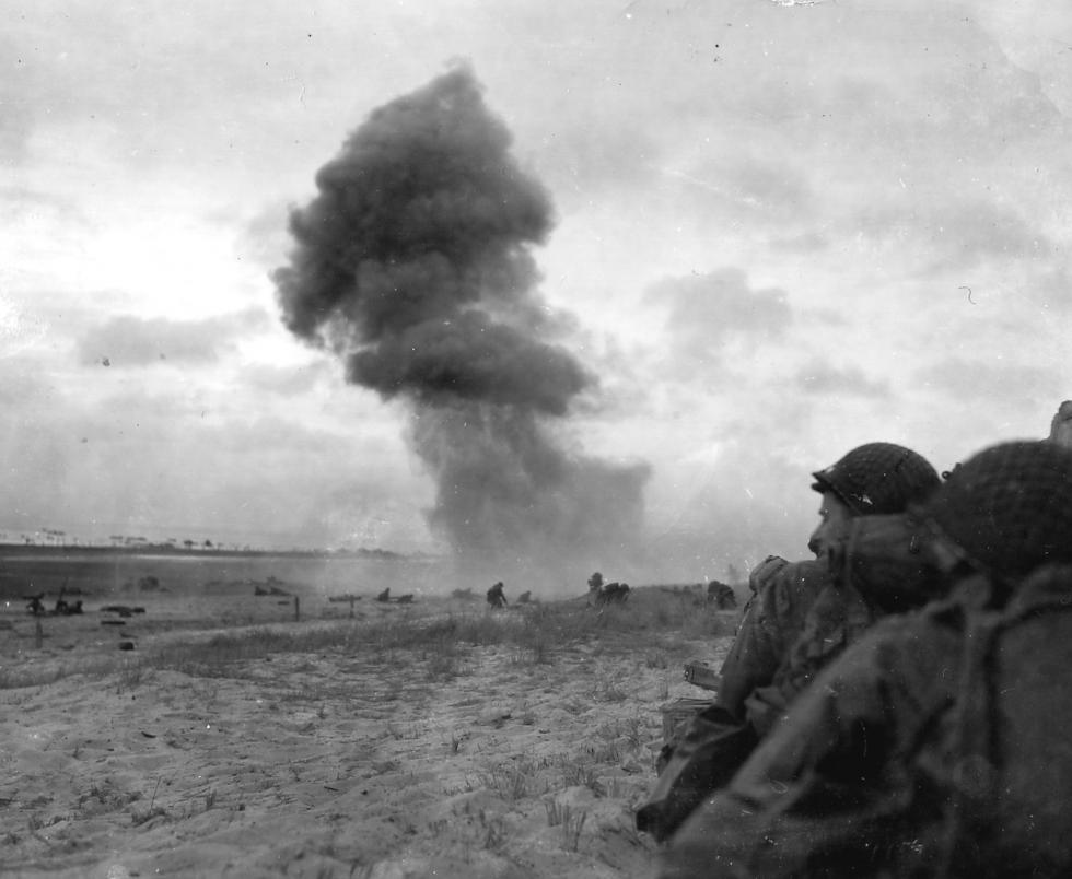 1944년 6월 유타 해변에서 독일군에게 포격당하는 미군들.