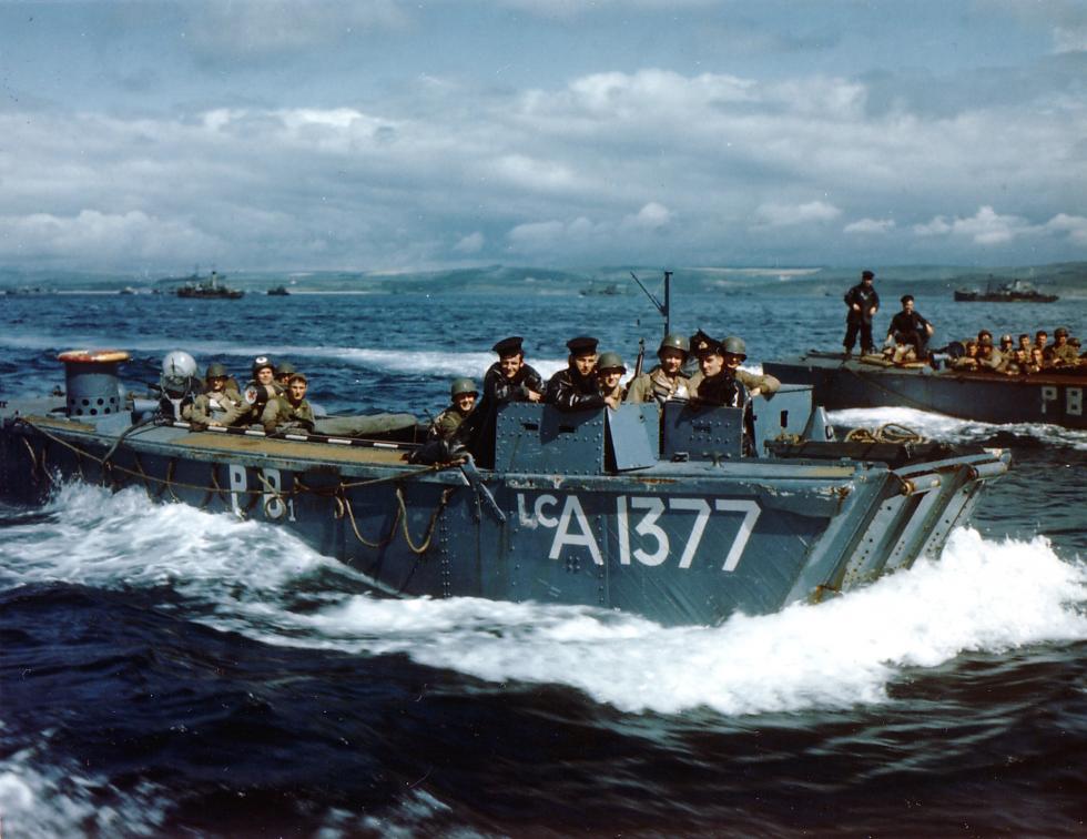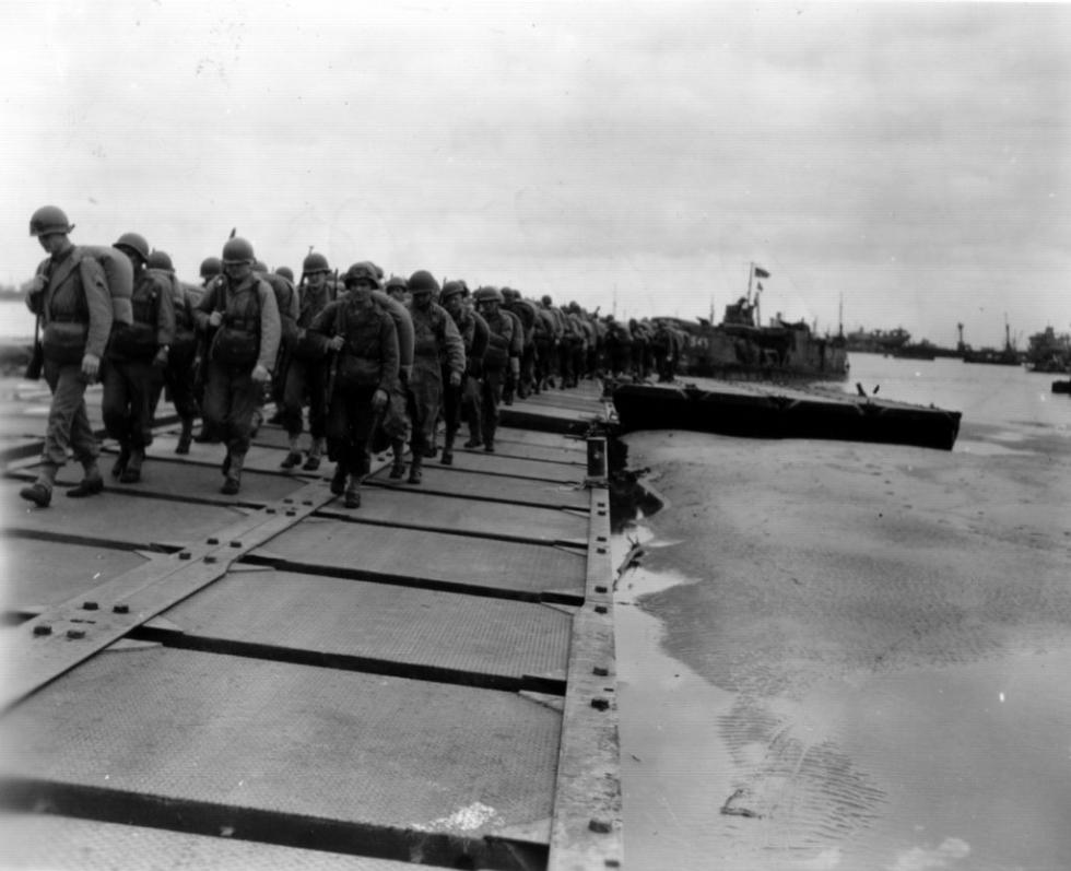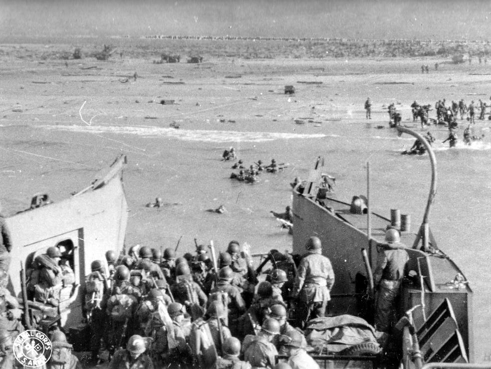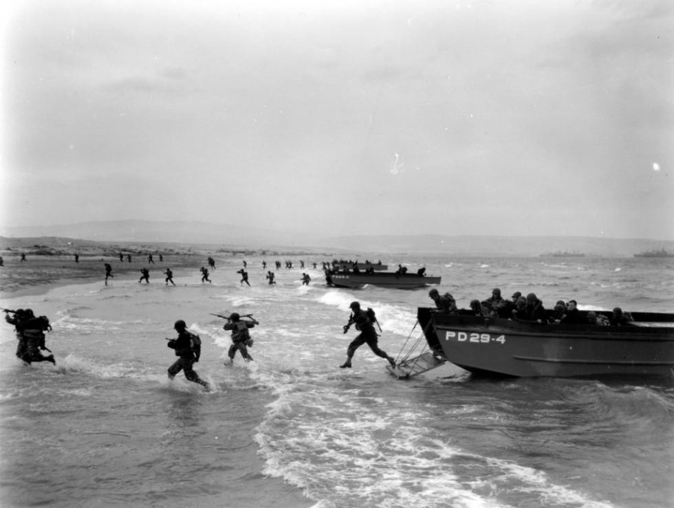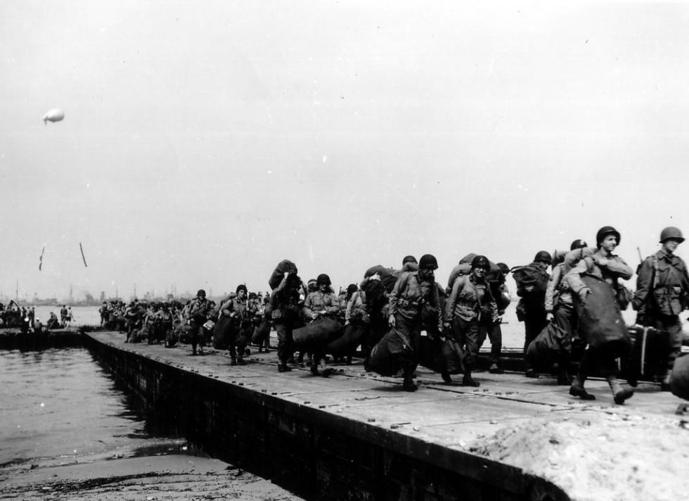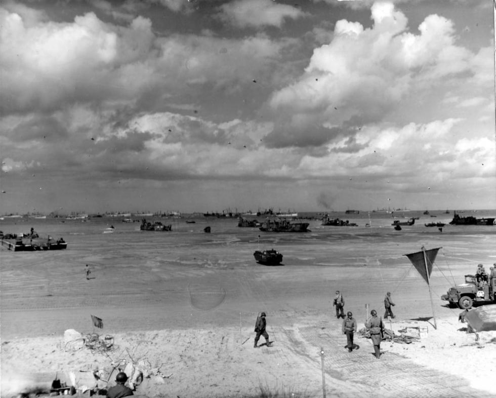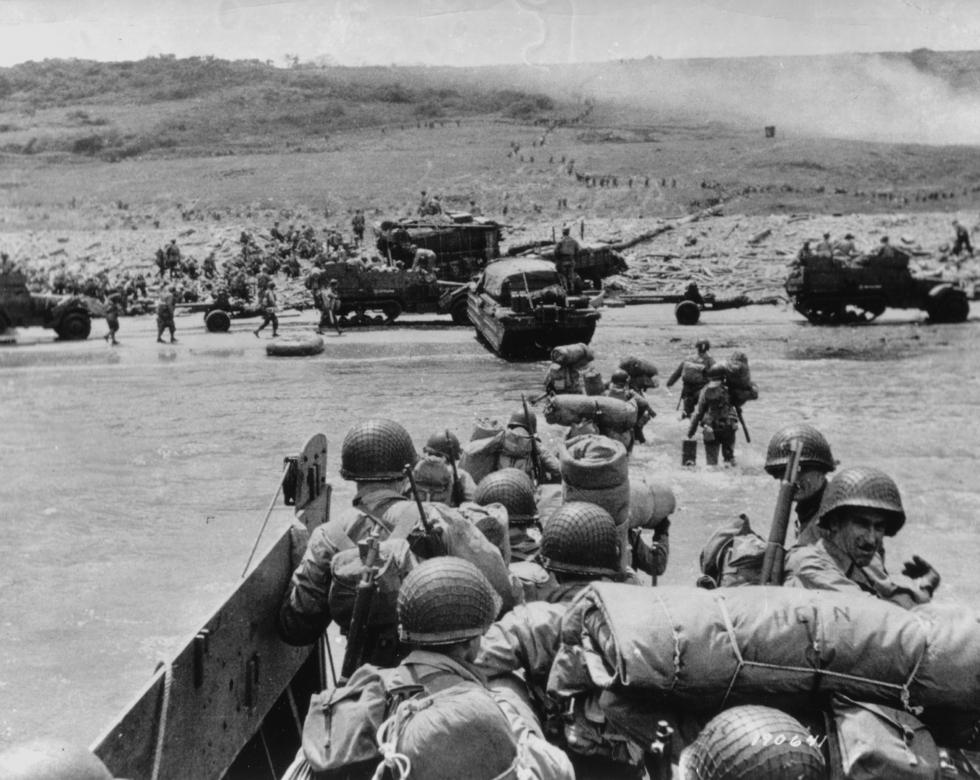 1944년 6월 유타 해변에서 독일군에게 포격당하는 미군들.