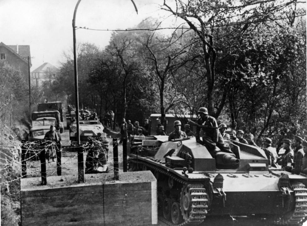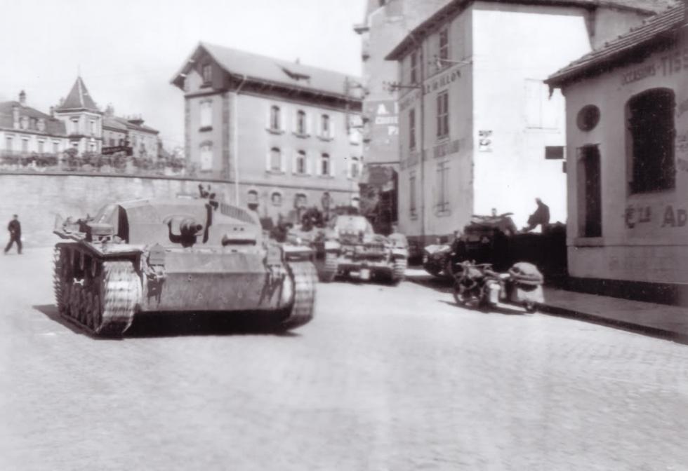 1940년 프랑스전...그로스도이칠란트(GD)보병연대 소속의 640돌격포대 3돌A형과 다른 기갑사단으로 보이는 2호 전차들.