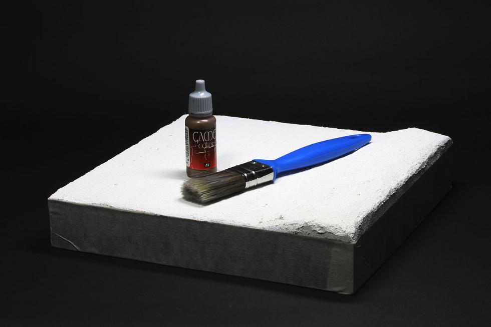 어스(Earth) 계열의 아크릴도료를 물에타서 페인트붓으로 한차례 발라주고 건조시킵니다. 두차례정도 칠해주어 도료가 스며들지않은 부분을 채워줍니다.
