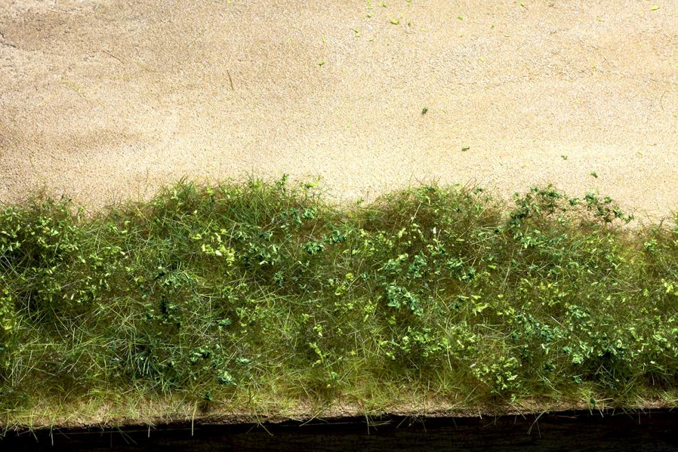 2) 스타틱그라스위에 와일드그라스를 올린모습입니다. 지면의 별도 색감작업 없이 자연스럽게 땅에 붙어있는듯한 풀의 모습을 표현하고 있습니다.