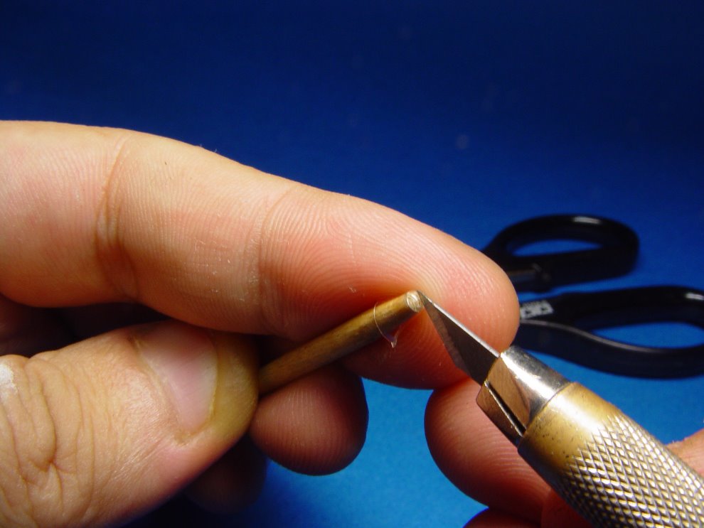 이쑤시게나 둥근 나무젖가락을 끝이 둥글게 갈아서