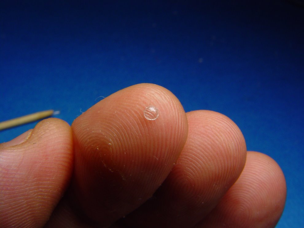 이쑤시게에 침을 살짝 발라 찍어서 위치시키고