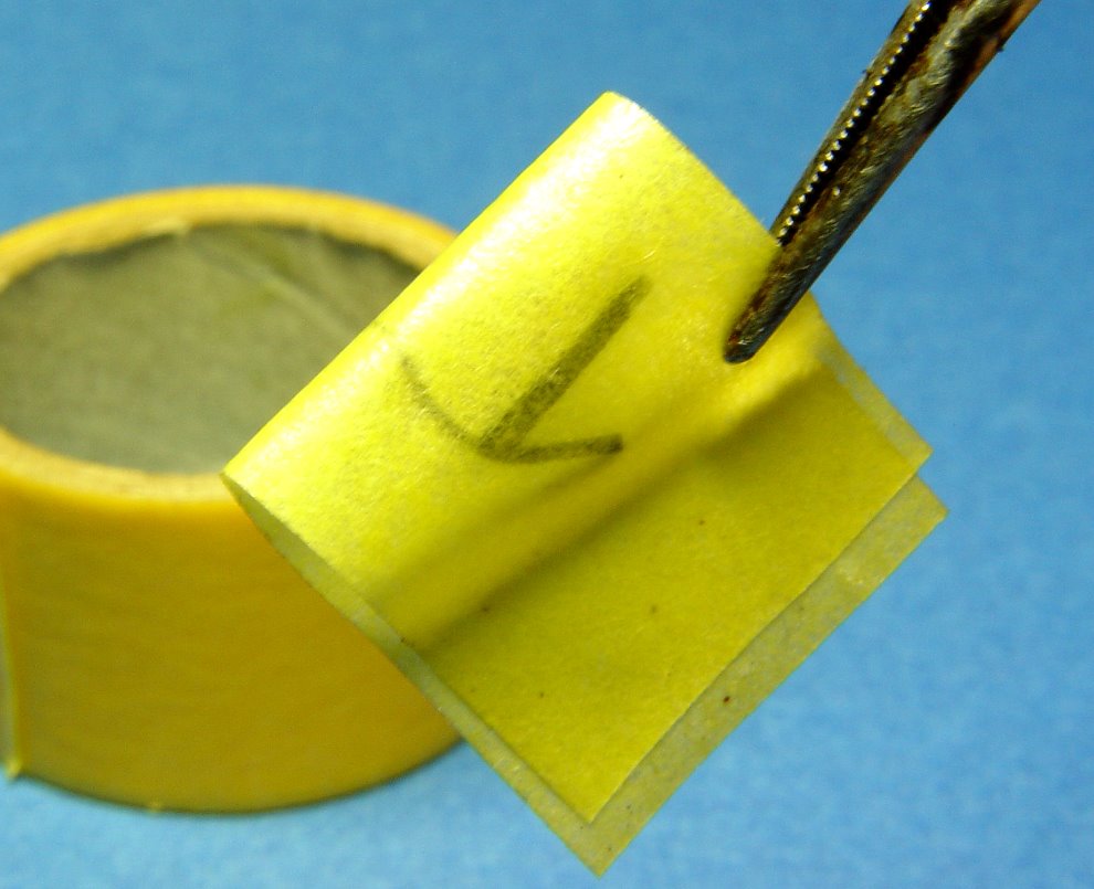 마스킹 테이프를 펼쳐서 황동판에 붙입니다.
