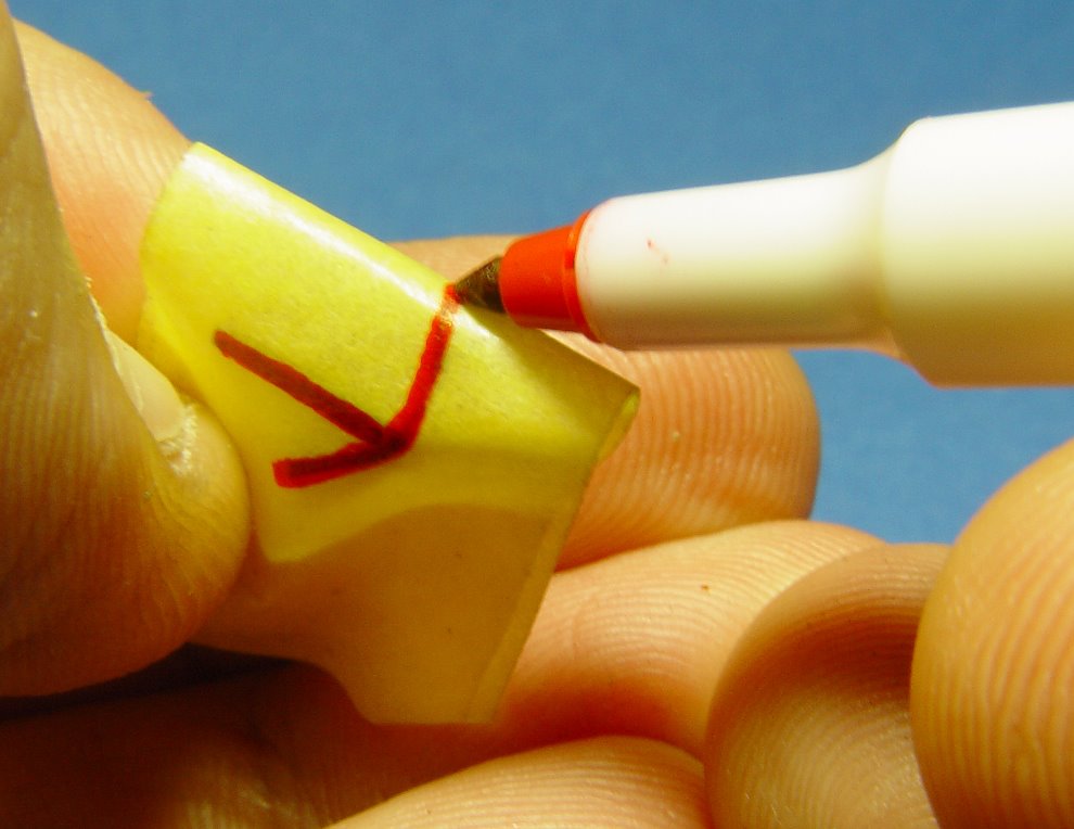 어렴풋이 보이는 플라스틱 라이트 가드를 따라 그려줍니다.