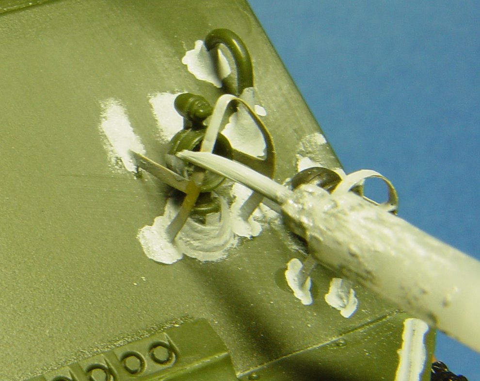 타미야 퍼티를 무수지접착제로 녹여서 접합부에 발라서 용접자국을 표현합니다.