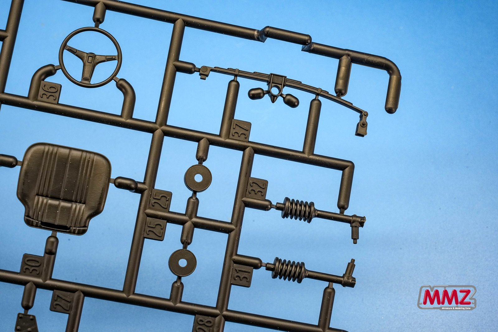전륜 코일 스프링, 후륜 판 스프링의 올드한 서스펜션도 재현되어 있고 전륜은 조향이 가능한 구조입니다.