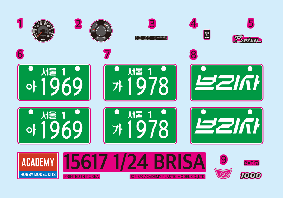 이 브리샤는 카모델즈가 설계한 것을 아카데미와 협업하여 발매하는 제품입니다. 이전에 T600 삼륜차와 같은 케이스입니다. 그래서 키트 설계가 아카데미 문방구 시리즈와는 느낌이 좀 다릅니다.