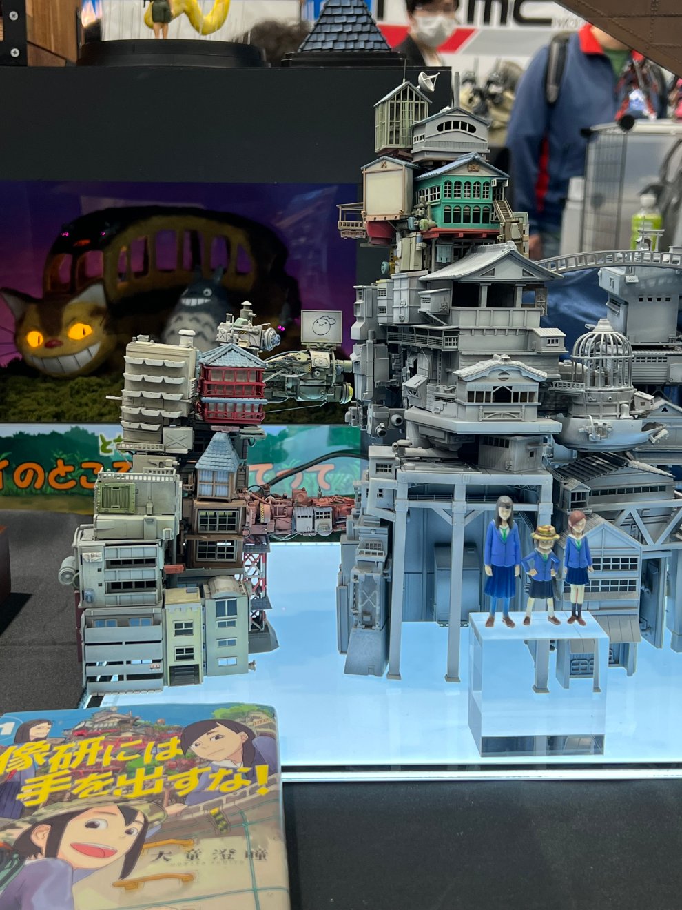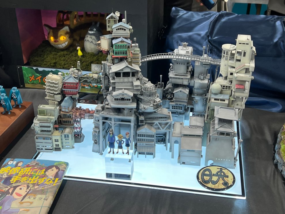만화 '영상연에는 손을 대지 마.'의 주역 3인방과 주인공이 디자인한 마을.