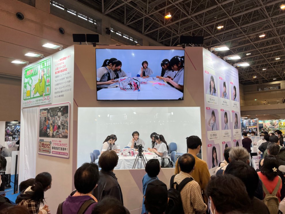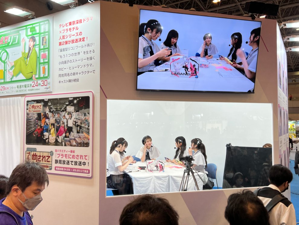 반다이 부스에서는 프라모델 홍보 아이돌이 나와서 토크쇼를 하고 있습니다.