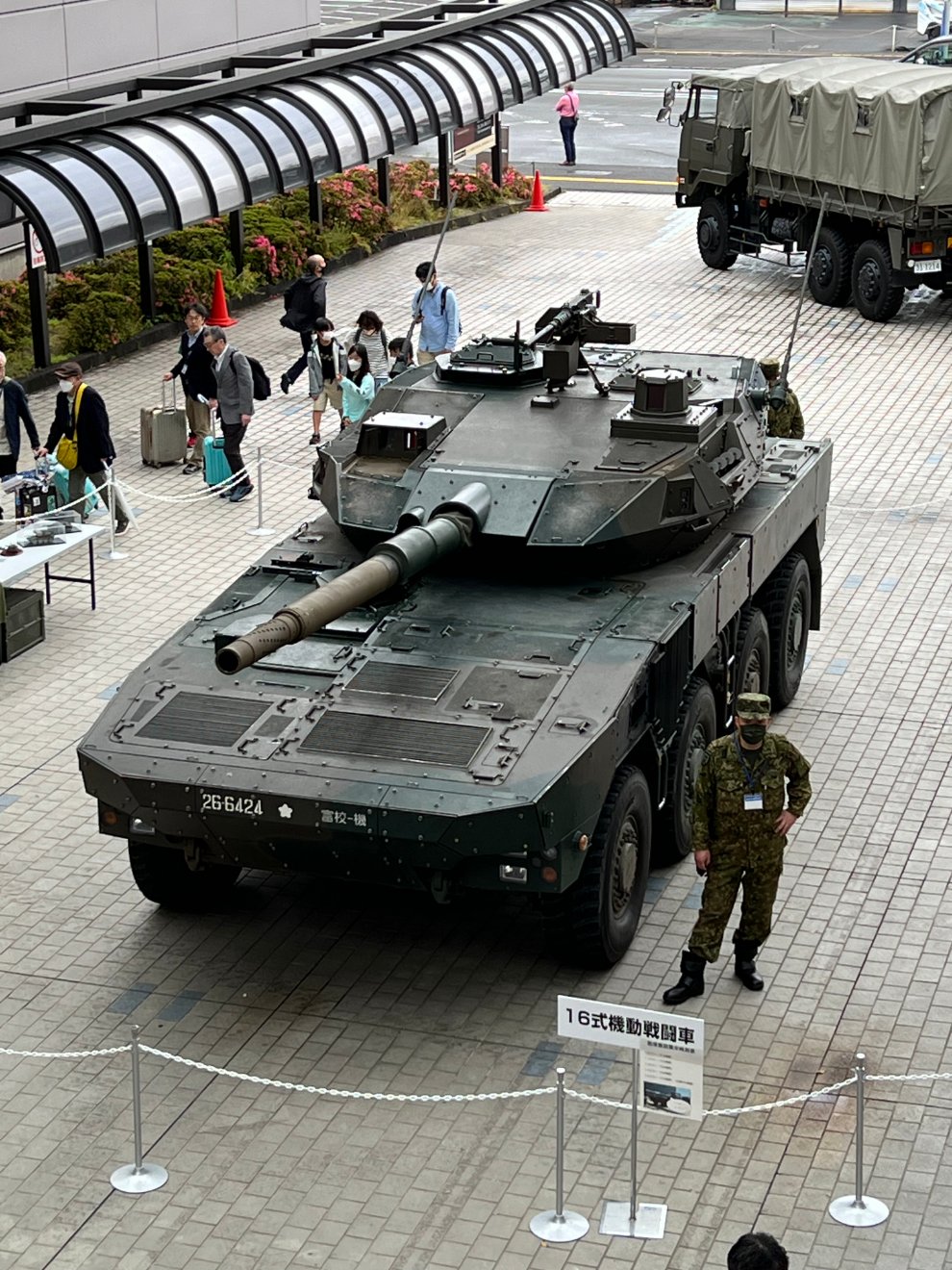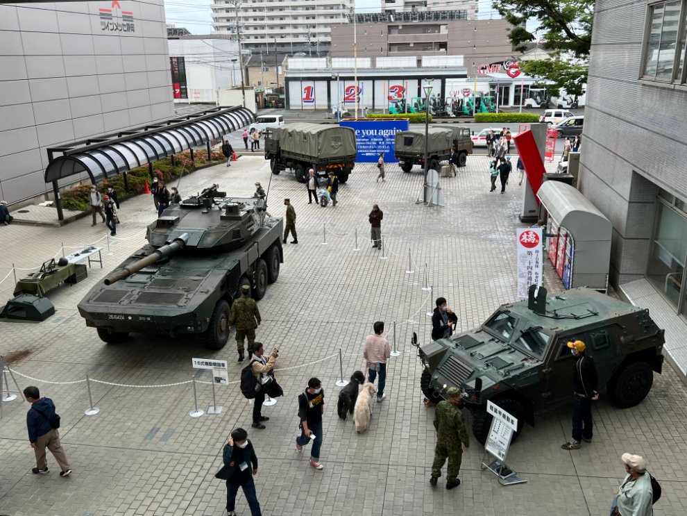 2층 전시장에서 내려다본 자위대 차량들.