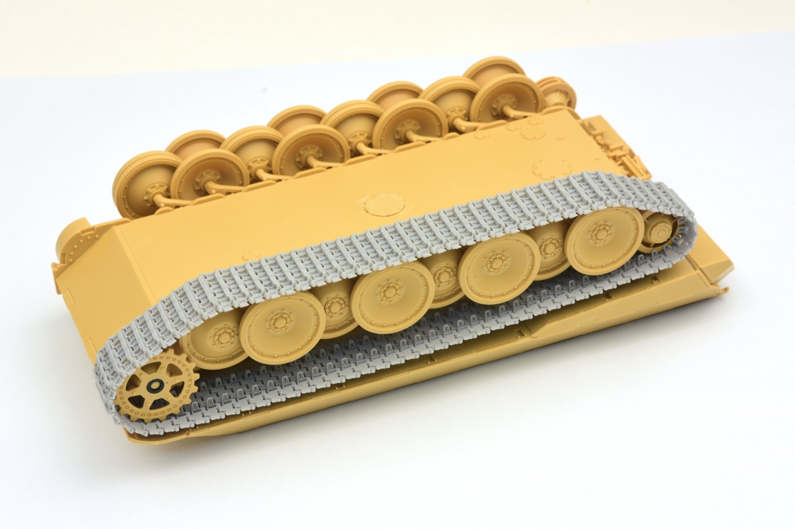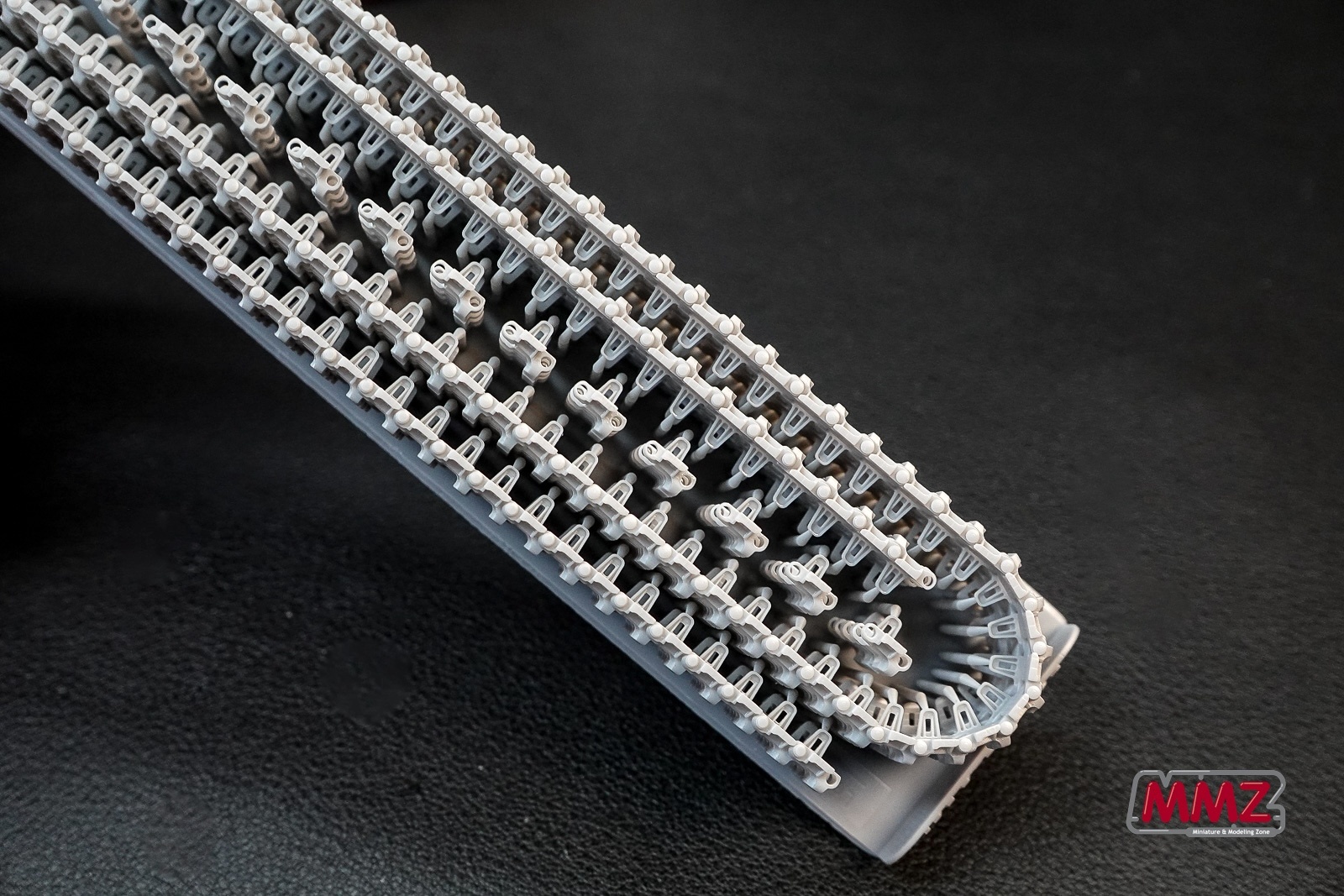 그렇습니다. 이 제품은 서포터만 제거하면 완전히 연결된 가동식 트랙이 떨어져 나옵니다. 모델러가 할 일은 마지막 한 마디에 핀을 끼워 주는 것 그리고 트랙을 전차에 장착하는 것 뿐입니다.