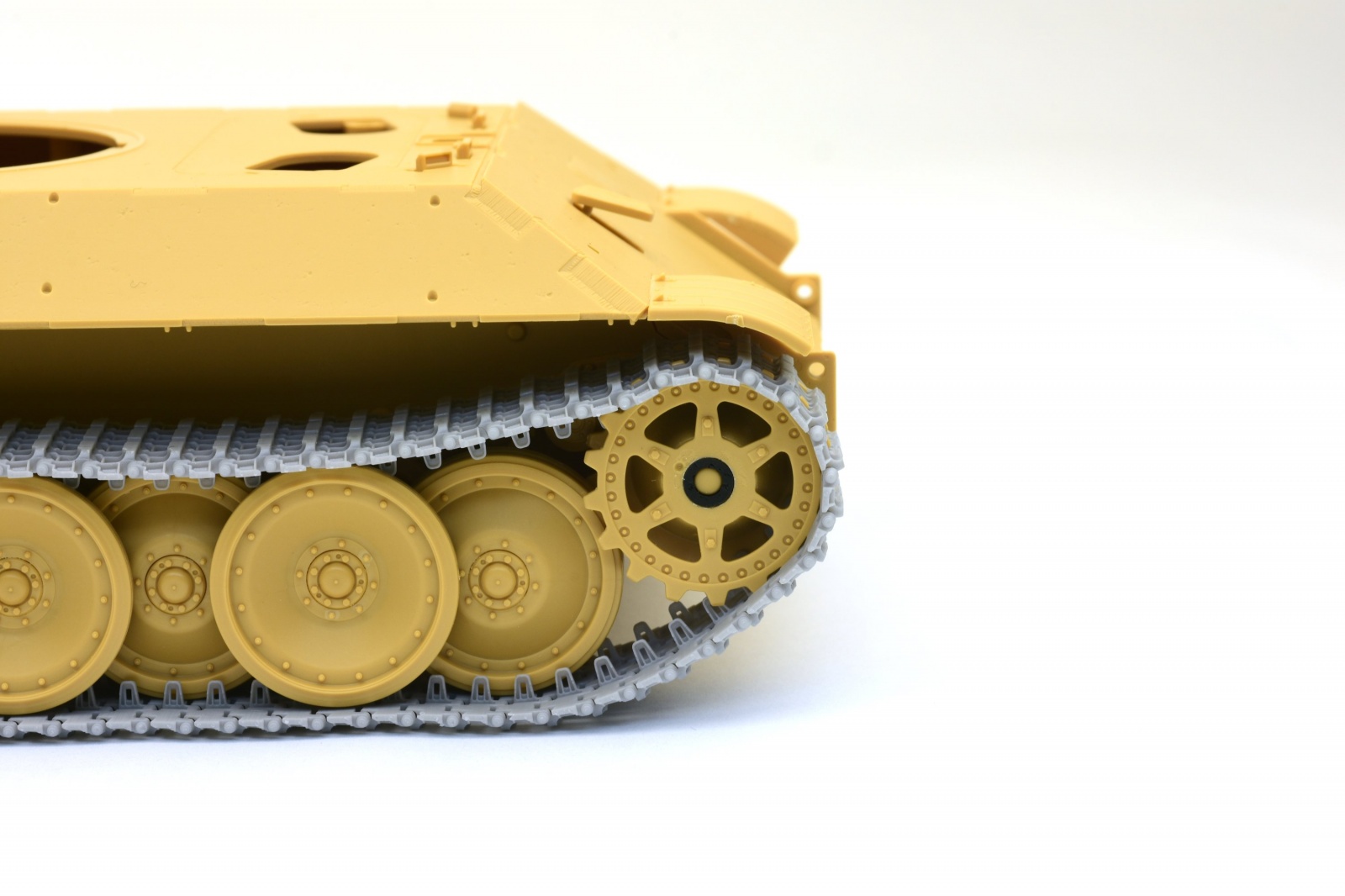 가동성과 디테일도 훌륭하지만 제가 칭찬하고 싶은 부분은 모델러의 노동량을 혁신적으로 줄여 주었다는 것 입니다. 예전에 농담으로 시계줄은 사면 조립이 되어 있는데 왜 가동식 트랙은 사서 일일히 끼워줘야 하냐고 했는데 저의 농담이 적용되지 않는 제품이 나와 버렸네요.