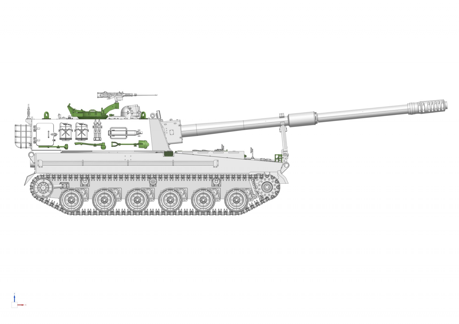 이 제품은 K9 / K9A1 용 포신 및 마운트 세트, K9 / K9A1 용 디테일업 세트, K9 / K9A1 / K10 용 세미커넥트 궤도세트 세가지로 구성되어 있습니다.