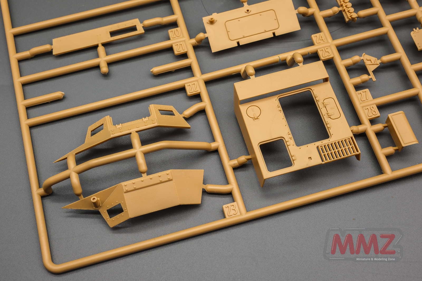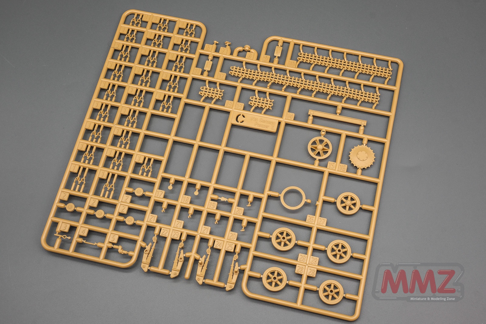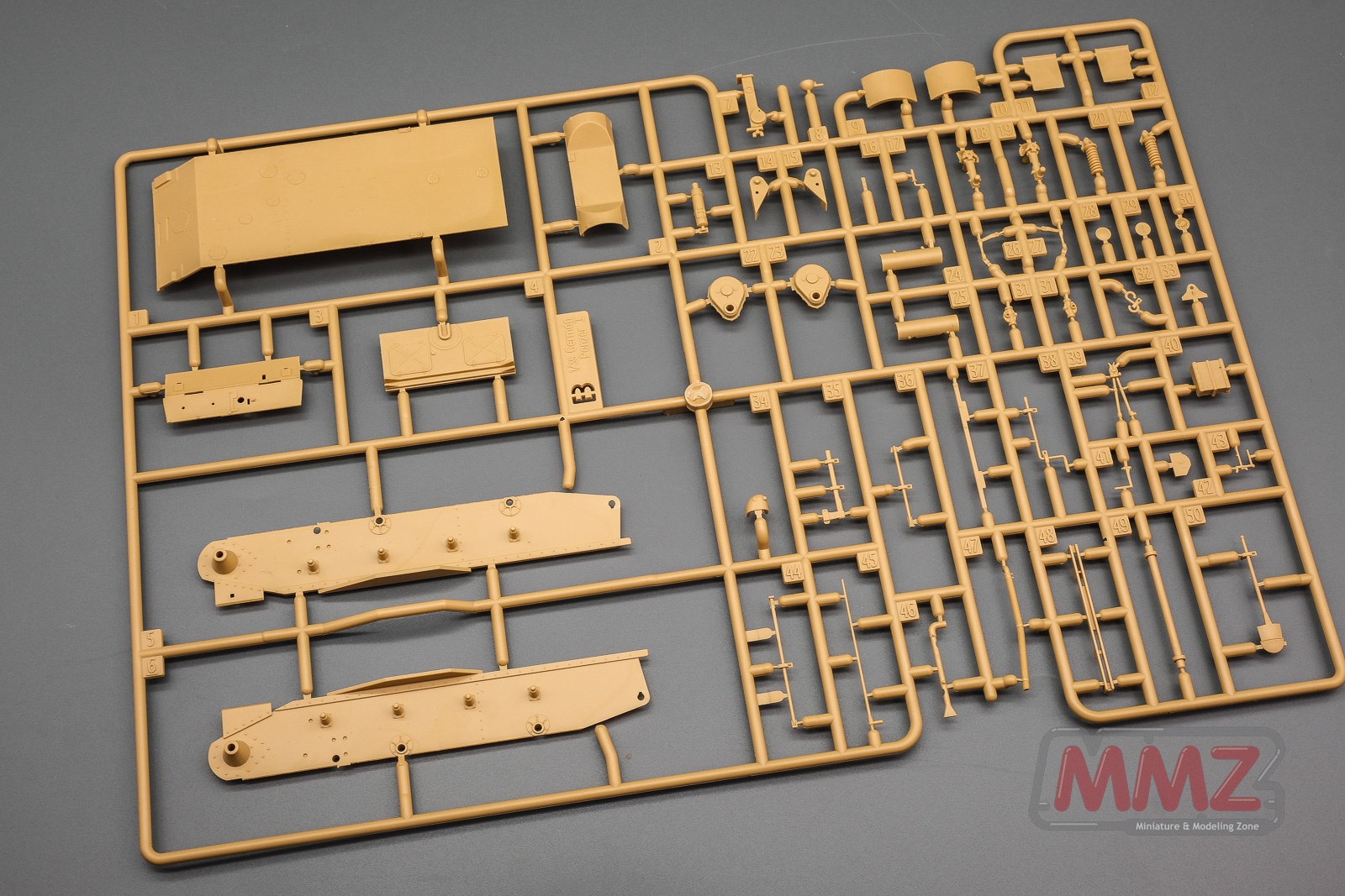 전차는 런너 네벌, 슬라이드 금형으로 사출된 포탐, 애칭, 데칼 그리고 나일론 견인 로프로 구성됩니다. 그 중에 A 런너는 주로 차체와 포탑 상부 부품으로 구성되어 있습니다.