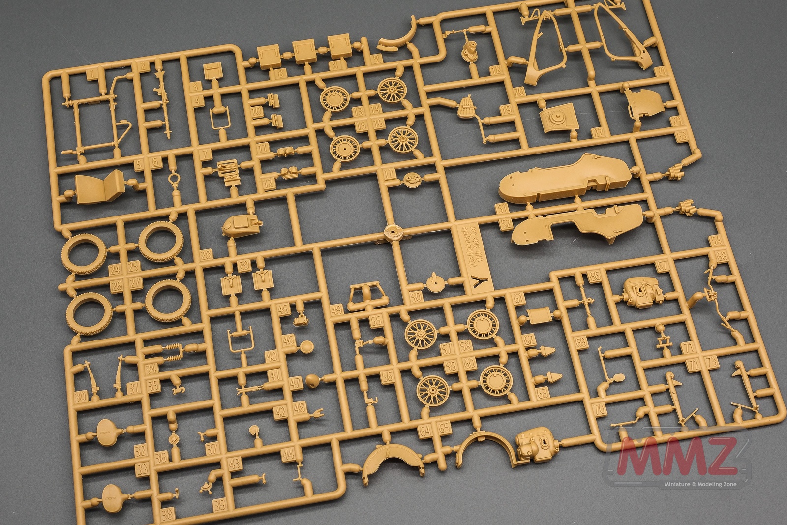 얼핏 보면 모터 싸이클과 사이드카의 부품이 전차보다 많아 보입니다. 타이어는 분리되어 있네요.