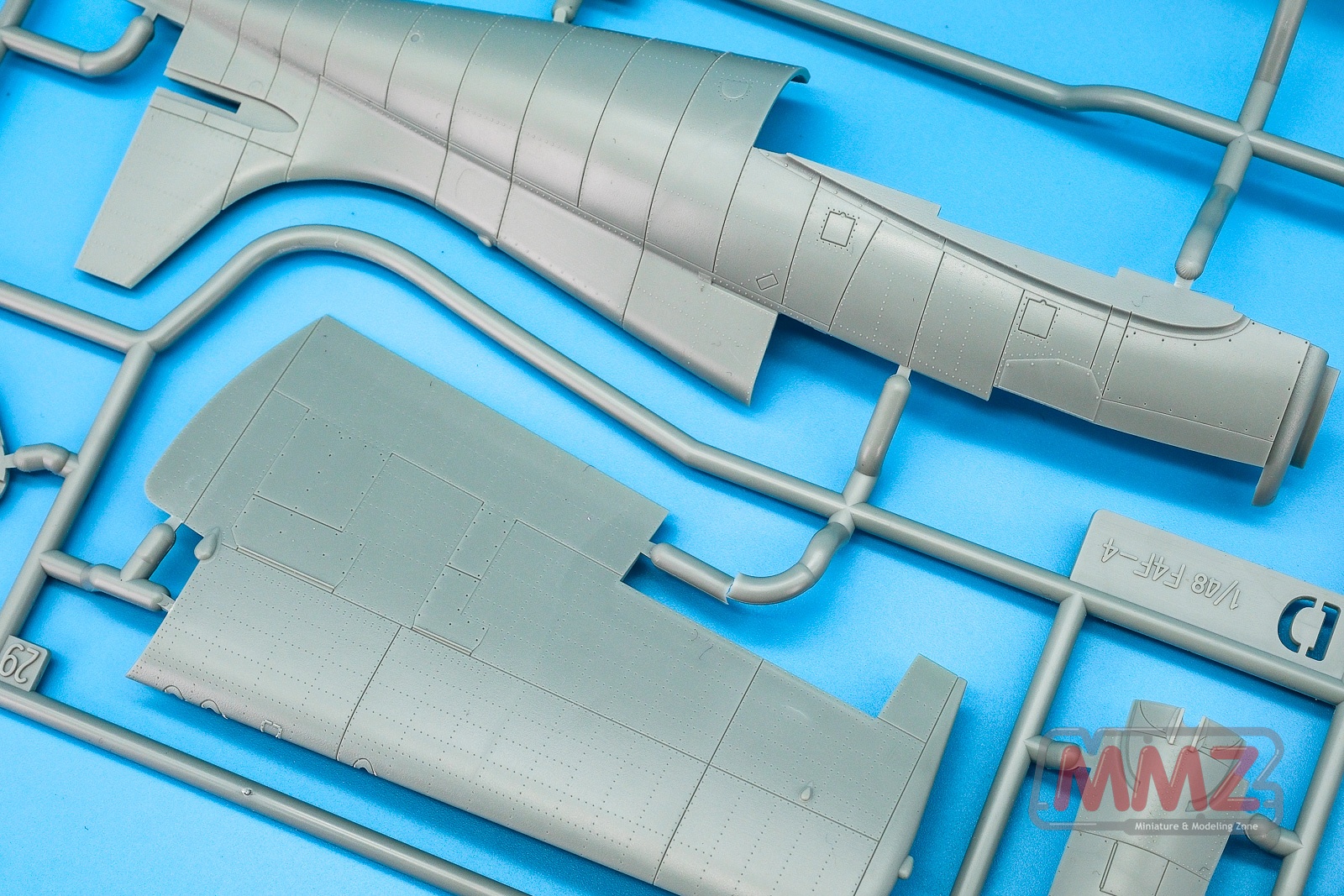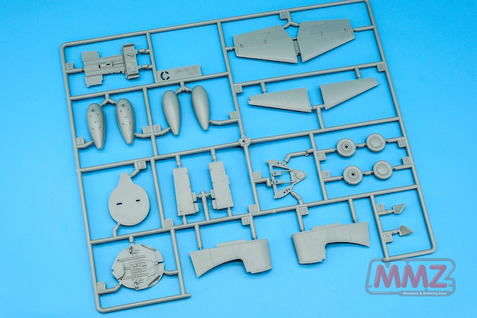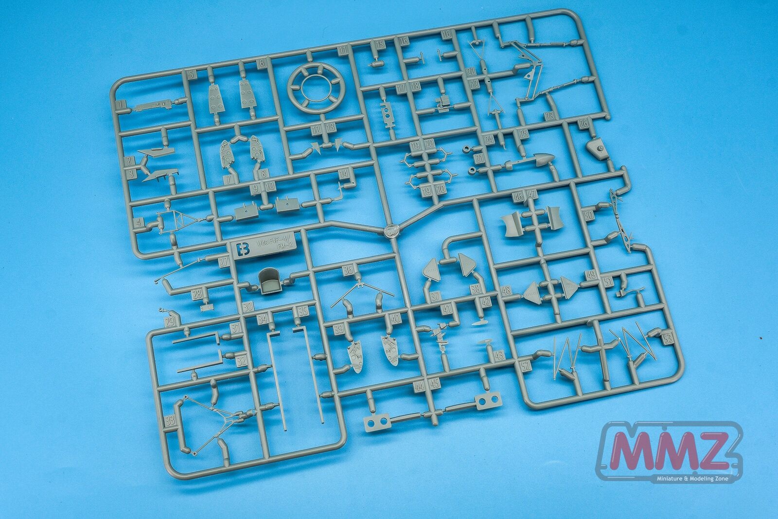D 스프루는 동체와 주익, 엔진 부품이 주를 이루고 있습니다. 이후에 설명하겠지만 F-4F-4 FM2 기체를 염두에 둔 설계로 아마도 F-4F-4 FM2에서는 D 스프루가 빠지고 다른 스프루가 포함될 것으로 추측됩니다. 스프루 넘버를 보면 D 파츠에는 F-4F-4로 표기되어 있고 나머지 스프루에는 F-4F-4 / FM2로 표기되어 있는 것으로 추측할 수 있겠습니다.