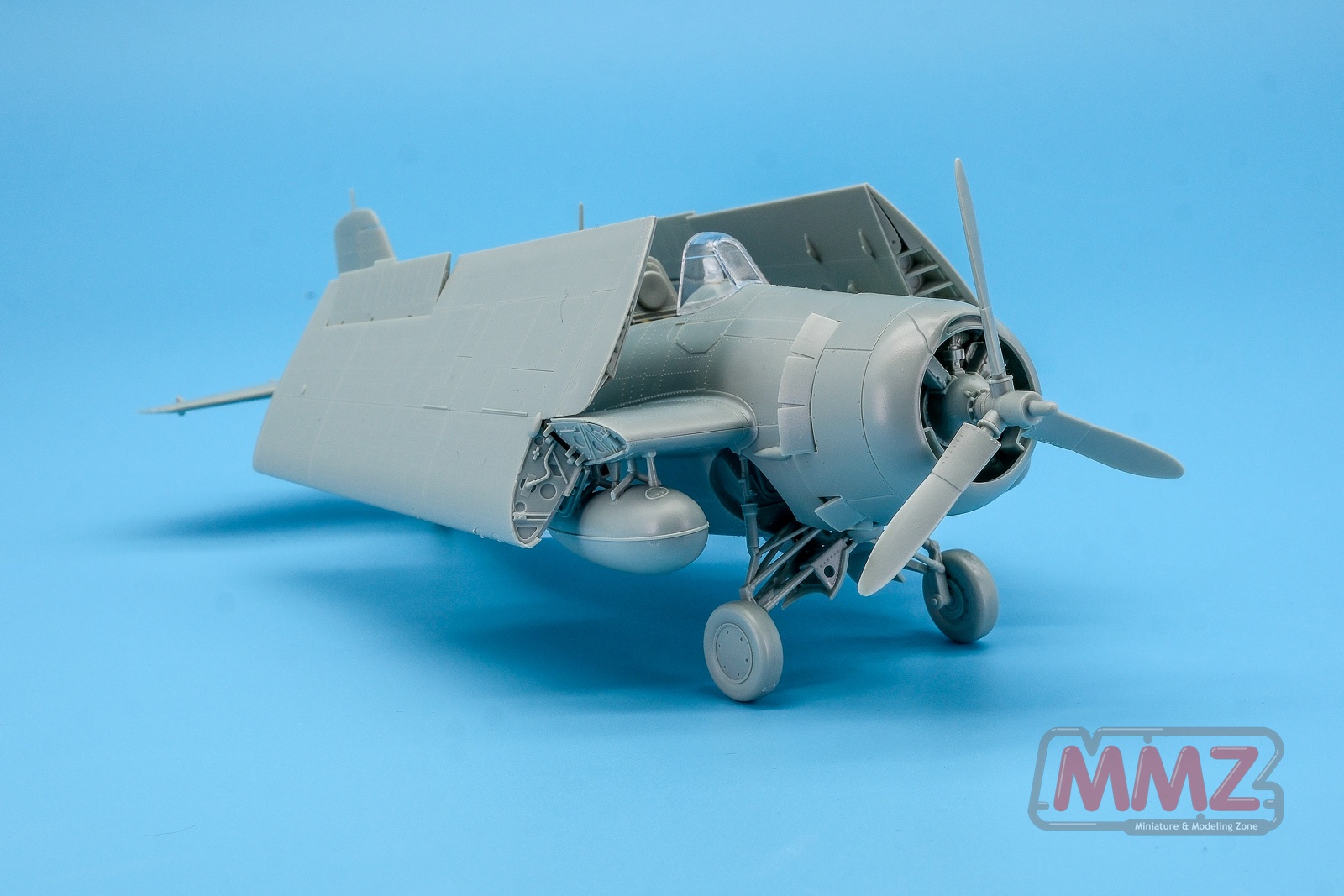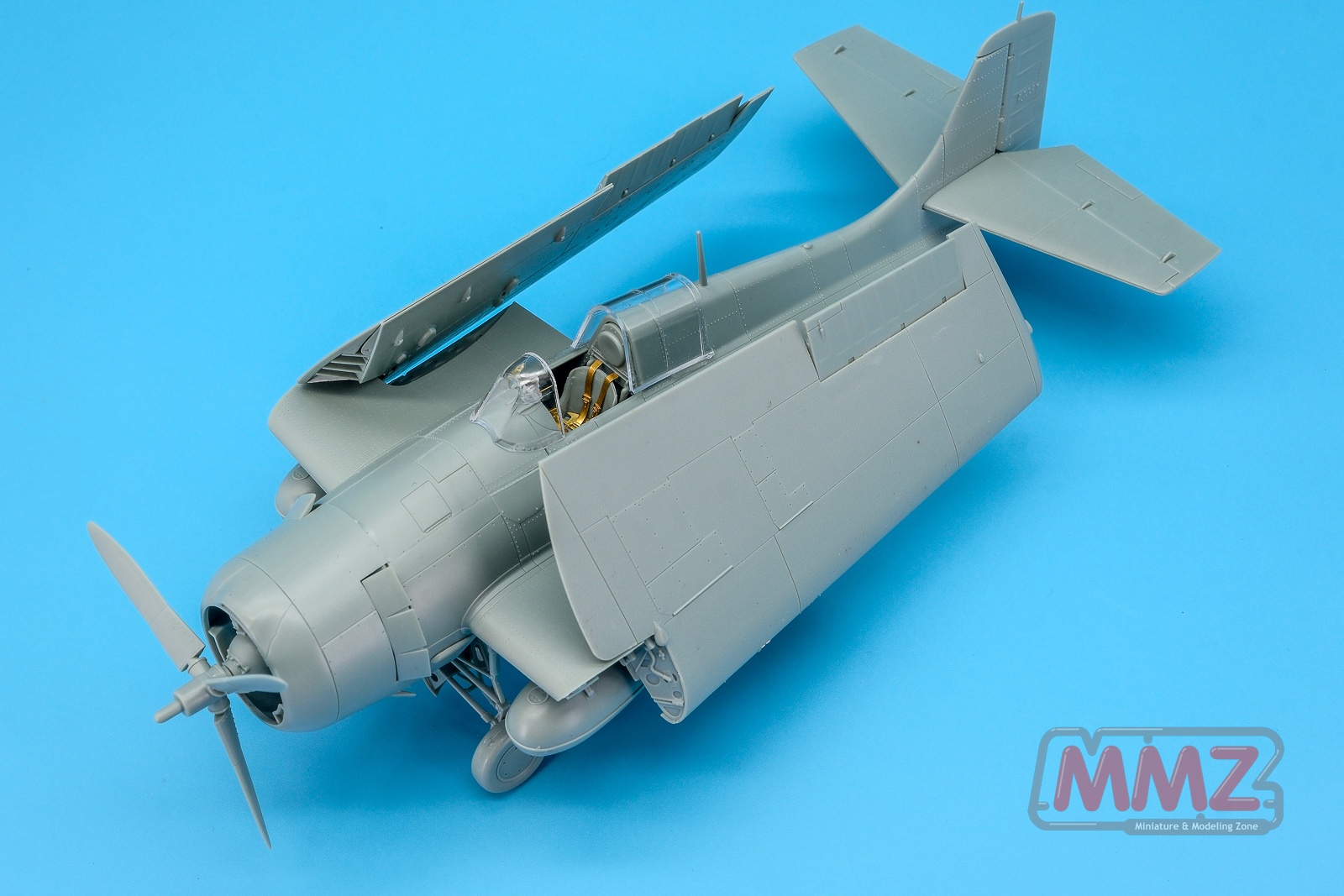 You can see part of the underside of the fuselage and the Pratt & Whitney R-1830-86 air-cooled 14-cylinder engine. In the FM2 version, this engine is replaced by the Wright R-1820-56 Cyclone 9, which means completely different parts are required along with the larger tail fin and other modifications.
