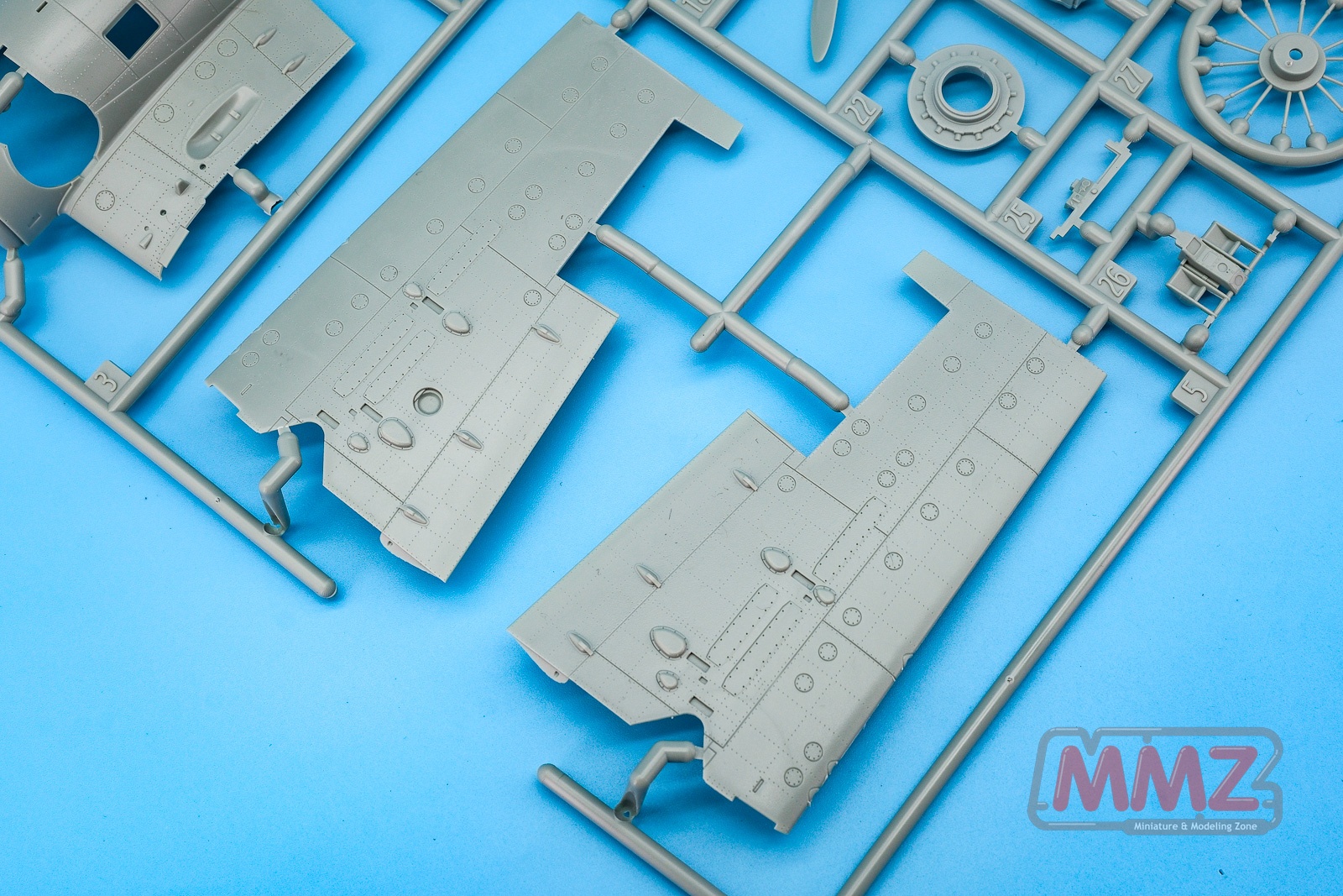 Sprue B contains the cockpit, additional parts for the folded wings, and various other components.