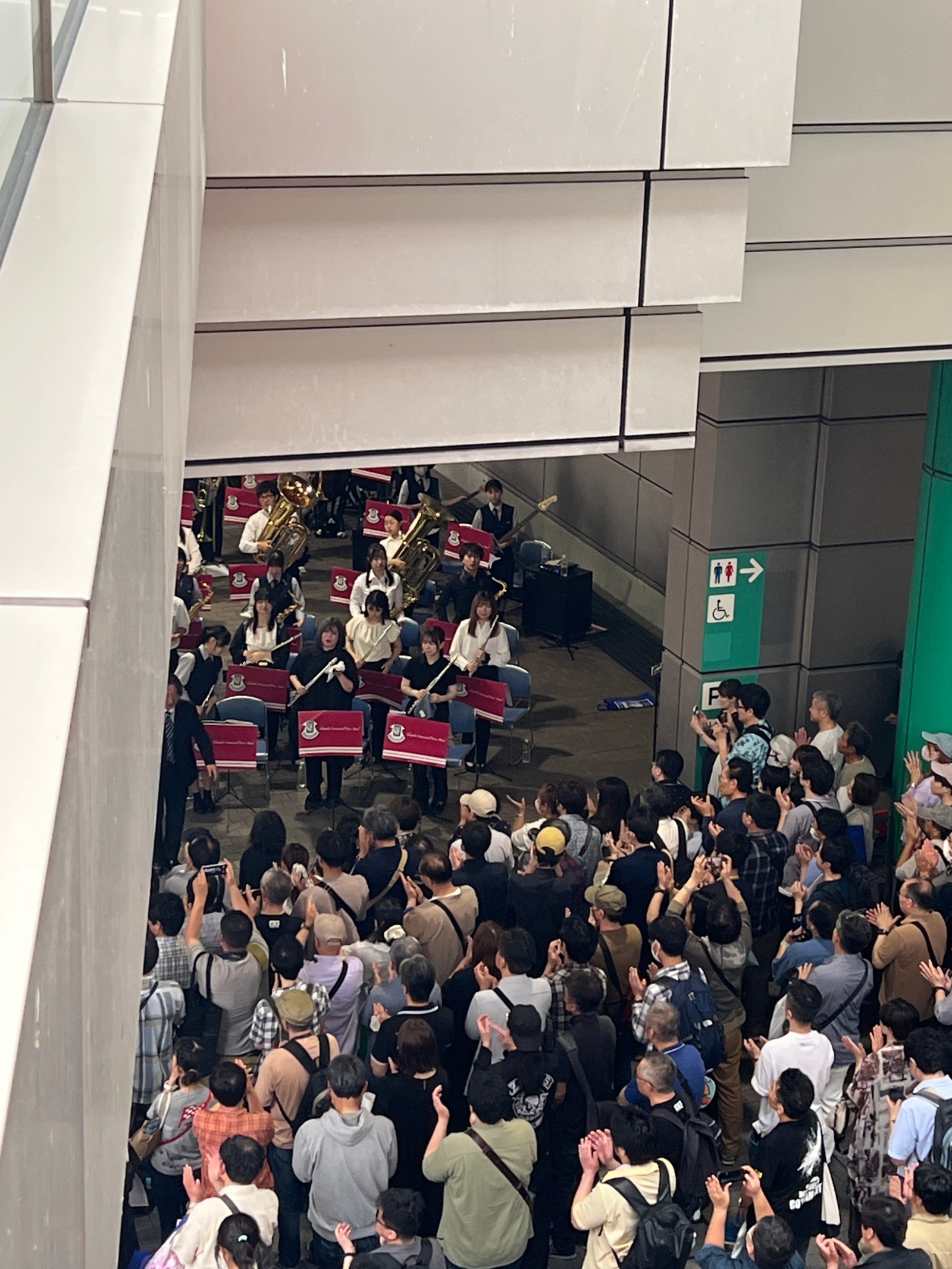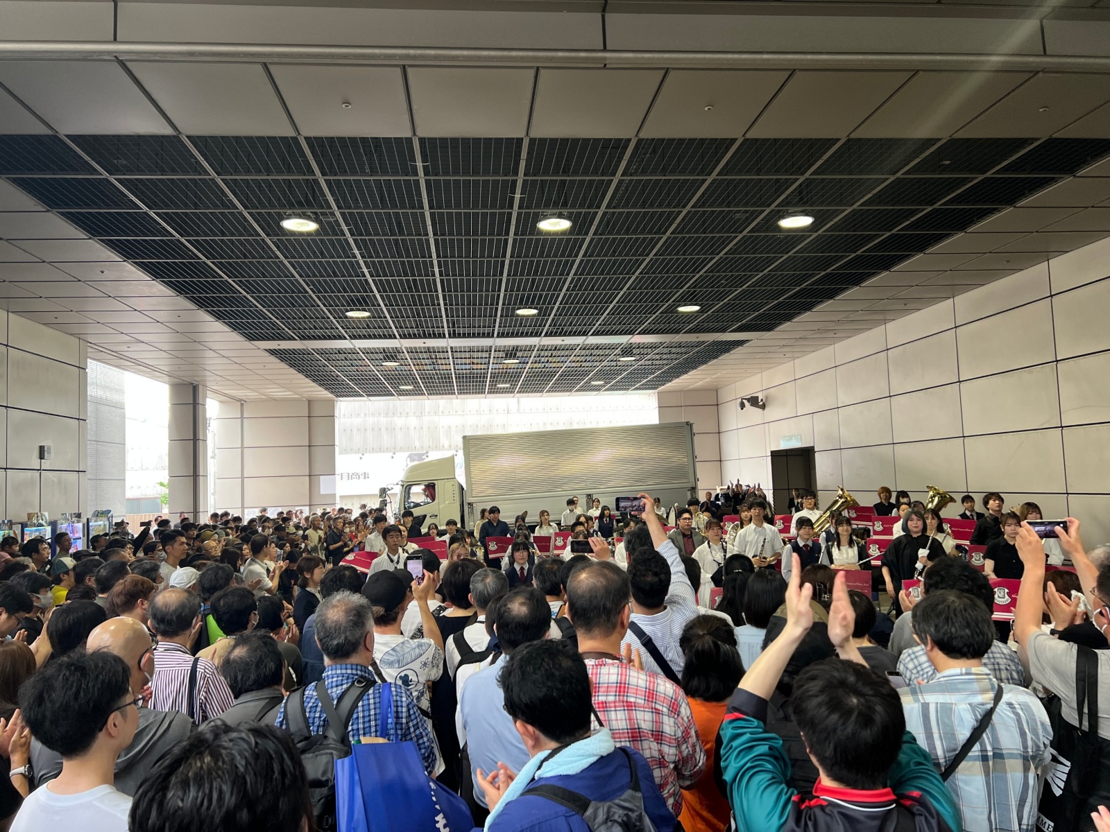 고등학교 취주악부의 축하 공연.