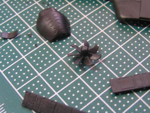 런너분리. 갑판 부품은 정방중인 경우화 항해중인 경우로 부품이 구분되어 있습니다. (실물은 가동되는 부분인듯)