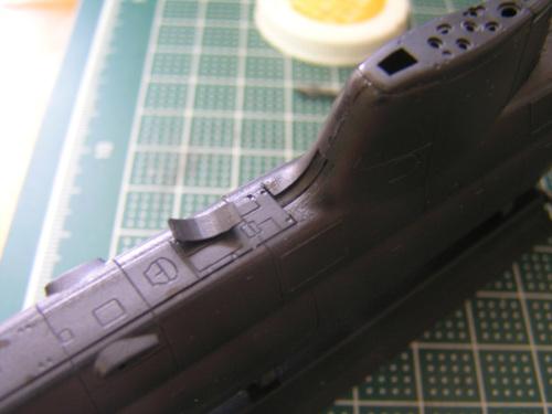 개인적으로 좀 아쉬운 부분인 잠망경. 좀 투박하고 굵어 보이는 데 만들때 손을좀 봐야할 거 같습니다.