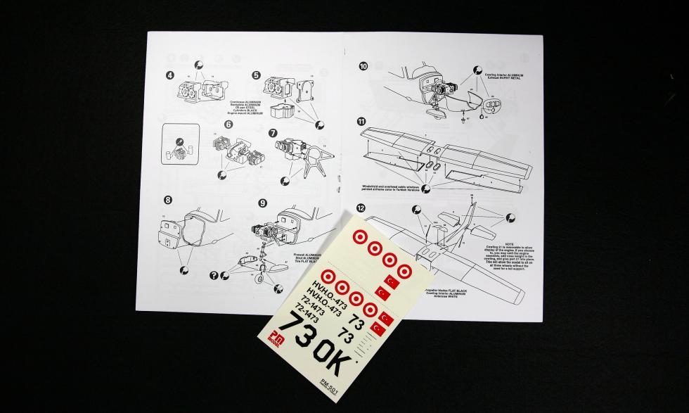 내용물중 설명서는 한장으로 되어 있습니다. 머 기체자체가 간단하니 단촐할 수 밖에 없지요..데칼도 작네요...기체가 작아도 실제 스텐실 부분은 많은데 생략되어 있습니다.