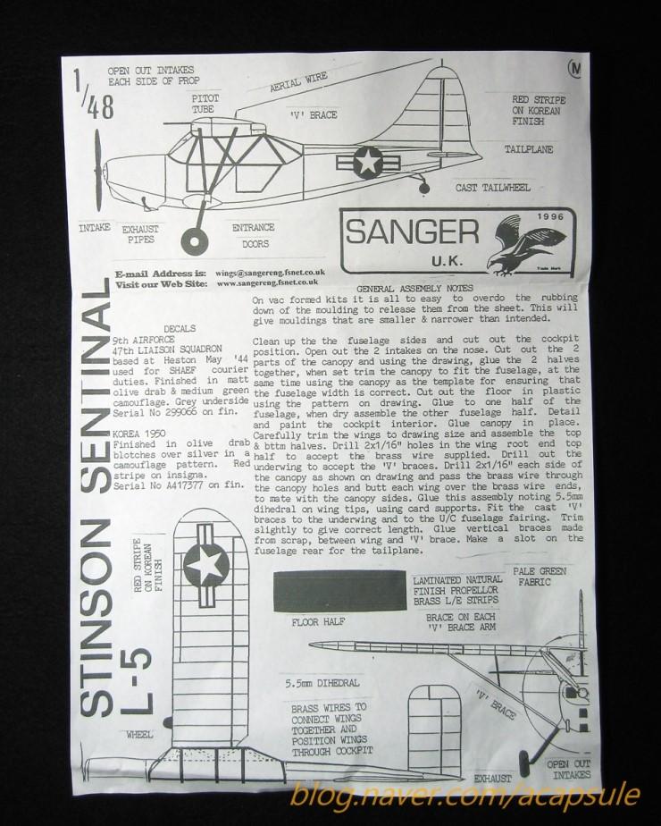 한국공군 창설기의 기체중 중요한 기체가 있습니다. 미군으로부터 처음으로 공여받은 L-4와 L-5입니다. L-4의 경우 성능의 미달 즉, 항속거리의 미달로 작전 수행에 어려움이 많았습니다. 거기에 일부 기체는 공군내부의 좌익세력들이 월북하는 바람에 10대의 공여기체중 일부가 손실되기도 했습니다. 이에 미군으로부터 미군이 사용중인 L-5를 2대로 시작하여 전쟁발발전까지 총 10대를 공여 받게된 한국공군의 창설기의 중요한 기체입니다. L-4의 경우 최근에 구한 키트로 48스케일제작을 완료하였지만 L-5의 경우 인젝션키트가 보이지 않아 자작해야하나 고민하던 차에 제가 주로 구매하는 해외사이트에 떡하니 48스케일의 키트가 보이길래 거기에 1 stock .....얼렁 구매했습니다..드디어 L-5를 만들어 한국전쟁발발시 공군이 성능미달의 기체들로 목숨바쳐 싸웠던 의미있는 기체를 만들겠거니 했습니다..기다려서 드디어 키트가 도착....기분좋게 개봉하는 순간 나도 모르게 소리를...ㅡㅡㅡㅡㅡㅡㅡㅡㅡㅡㅡㅡㅡㅡㅡㅡㅡㅡㅡㅡㅡㅡㅡㅡㅡㅡㅡ;;;;; "아...ㅆ,,,,,,,,,,,이런 된장 고추장.....미치겠다..."