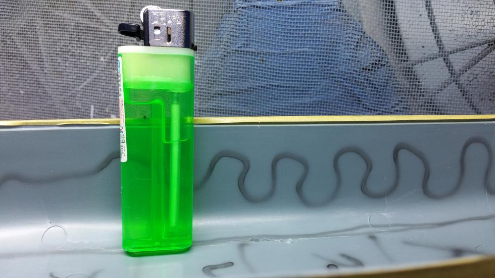 선 굵기 비교 겸 일반 400원 짜리 라이타를 세워놓고 찍은 겁니다. 예를 보여드릴려고 공들이지는 않고 가볍게 선으로 그어 봤습니다.