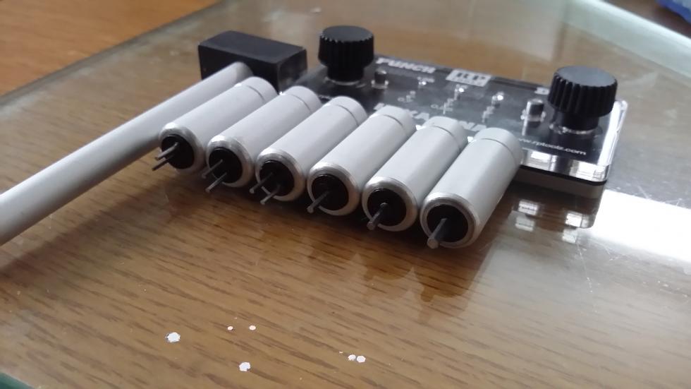 1mm미만짜리 펀칭기에는 고정시키는 동일지름의 금속봉이 한개씩 더 박혀있습니다. 아무래도 직경이 작다보니 틀어질 염려가 있어서