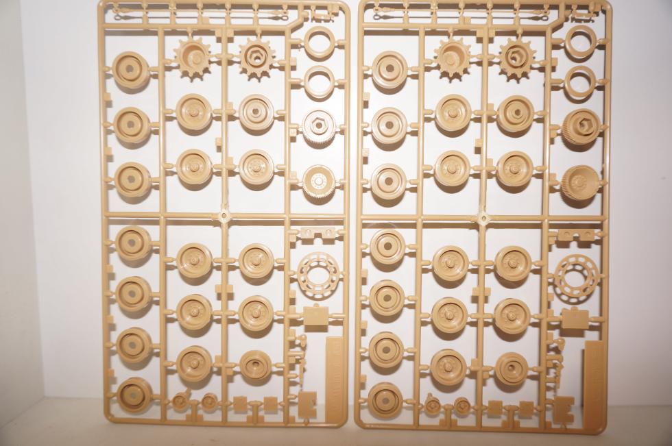 이 런너는 타미야 3채널 M1 모터라이즈의 카피로 보입니다. 그래서 타미야 M1 싱글 모터라이즈 버전에 들어 있는 고무 궤도를 돌리기 위한 스포라켓도 같이 성형되어 있는 게 보이네요.