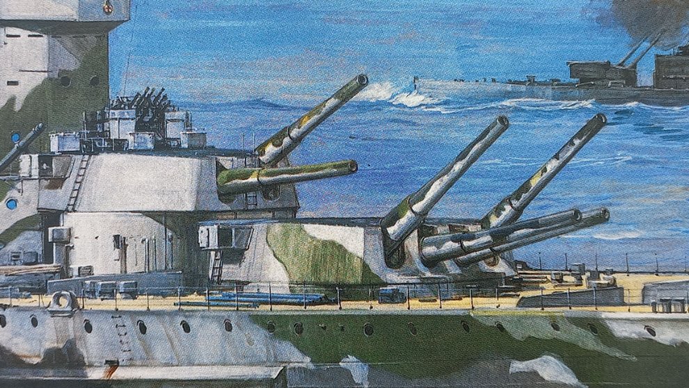 이렇게 포신을 이렇게 정렬을 안해놓고 싶었는데(근데 이 모습이 포신 정렬하던 모습을 그린거 아닌가...) 원 주인분께서 설명서에 나온 10도로 4연장 주포탑 2개와 2연장 주포탑 1개를 정렬해놓으셔서 아쉽게 되었습니다.