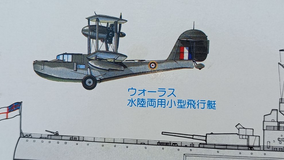 반대쪽은 슈퍼마린 왈루스의 측면 모습과 함께 일종의 프린스 오브 웨일스 전함을 위한 컬러 도색 가이드를 겸해서 덴마크 해협 해전 당시의 모습 1장과(어차피 단색이니까...) 말레이 해전 당시의 좌우 모습을 설명하고 있습니다.