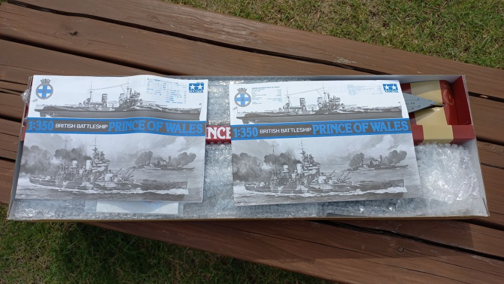배송비+박스비만 받고 인수 받은 주포탑 3문과 대공포탑, 대공포만 만들어놓으시고 서랍 위에 썩어갔다는(...) 타미야 1/350 프린스 오브 웨일스 입니다. 지난번 1/700 트럼페터 후드 순양전함 제작기를 카페에 올렸다가 플라이호크 1/700 후드 이야기 중 양도 의사를 물어주셔서 냉큼 받아왔습니다. 우선 후드부터 완성하고 천천히 제작해볼 생각입니다.