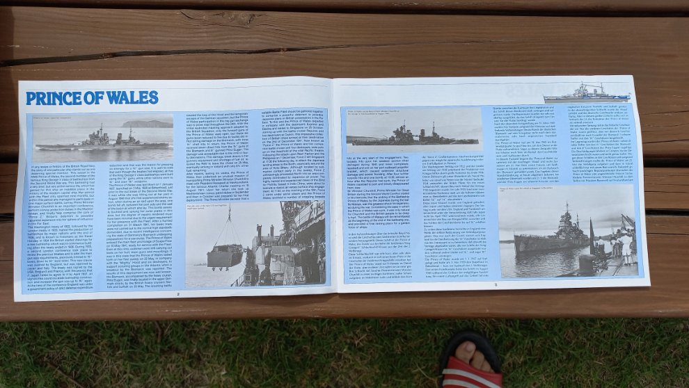 상부 모습과 프린스 오브 웨일스 전함 휘장, 슈퍼마린 왈루스 함재수상기의 상부 모습이 그려져 있습니다. 아무래도 이 당시에는 (하부 헐의 각인을 보니 1985년이라고 적혀있더라구요.) 아무래도 인터넷이 없던 시절이고 이런 병기의 자세한 지식을 습득할 수 있는 전문 서적을 아이들이 구하는것은 어려워서 그런지 해당 병기에 대한 설명 뿐 아니라 거기에 연관된 세부 사항까지 설명해주는 상세한 설명이 매력 같습니다. 요즘도 간단한 설명은 따로 해주는것 같더군요.