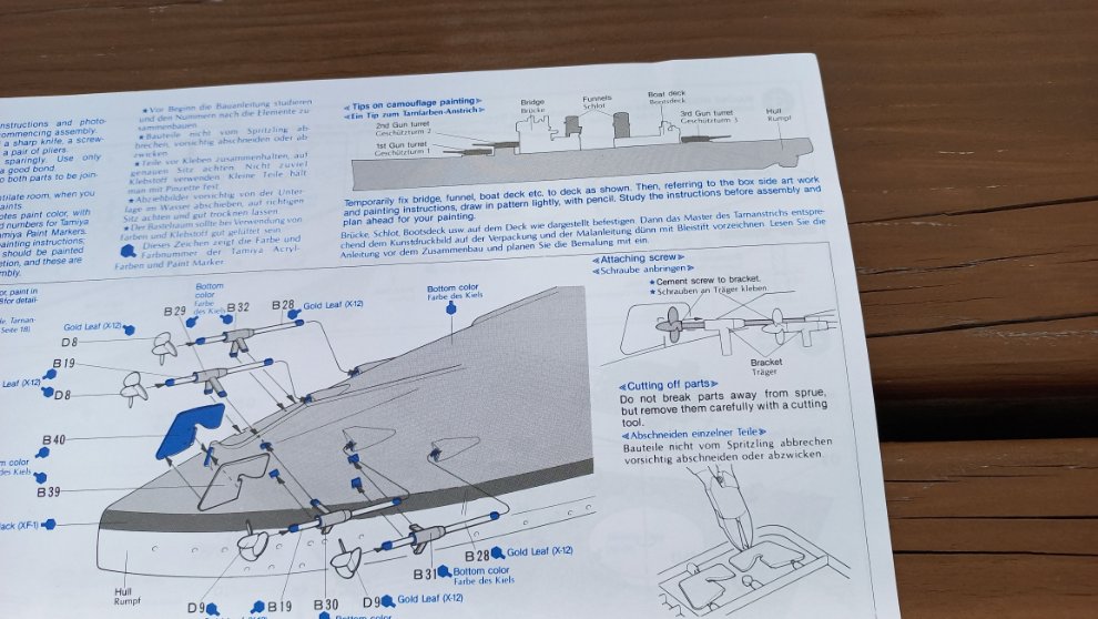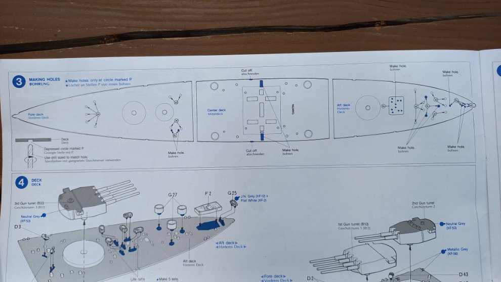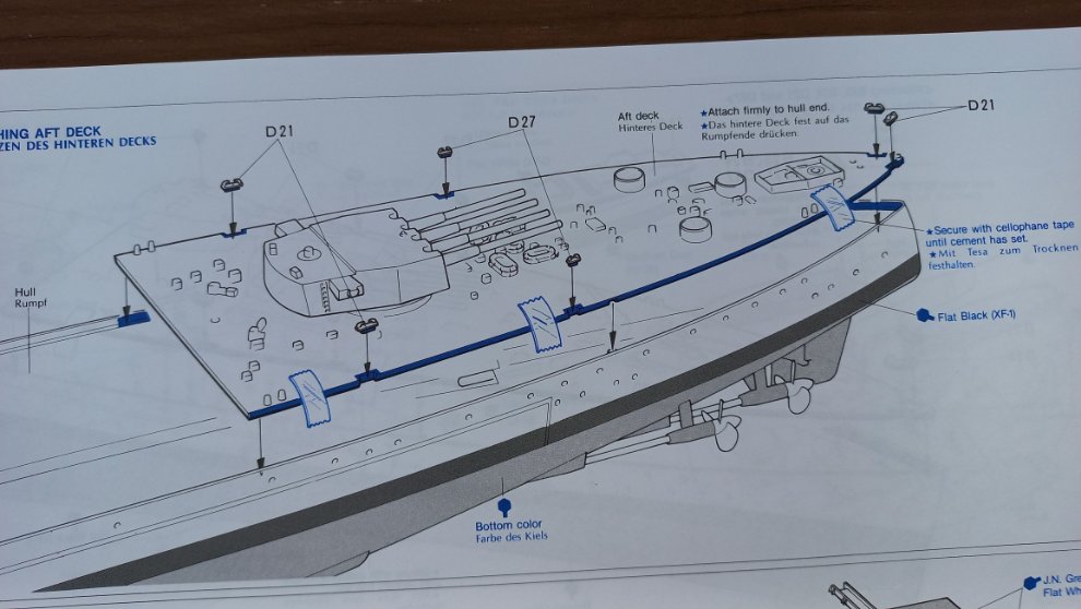 저 선체가 갑판을 가조립해보니 안쪽으로 살짝 들어가 있어서 갑판을 올리면 한쪽이 튕겨 나오더라구요. 타미야는 항상 이런 부분을 다 예측한듯 지상군도 그렇고 넓은 판을 연결하며 휘어짐 현상이 발생할 부분에는 항상 접착제가 마를때까지 테이프로 잠시 고정시켜두라고 설명해주니 편합니다. 그러고보니 레벨의 항공기는 아예 빨래 집게로 몇시간동안 고정하라고 나와있던데...